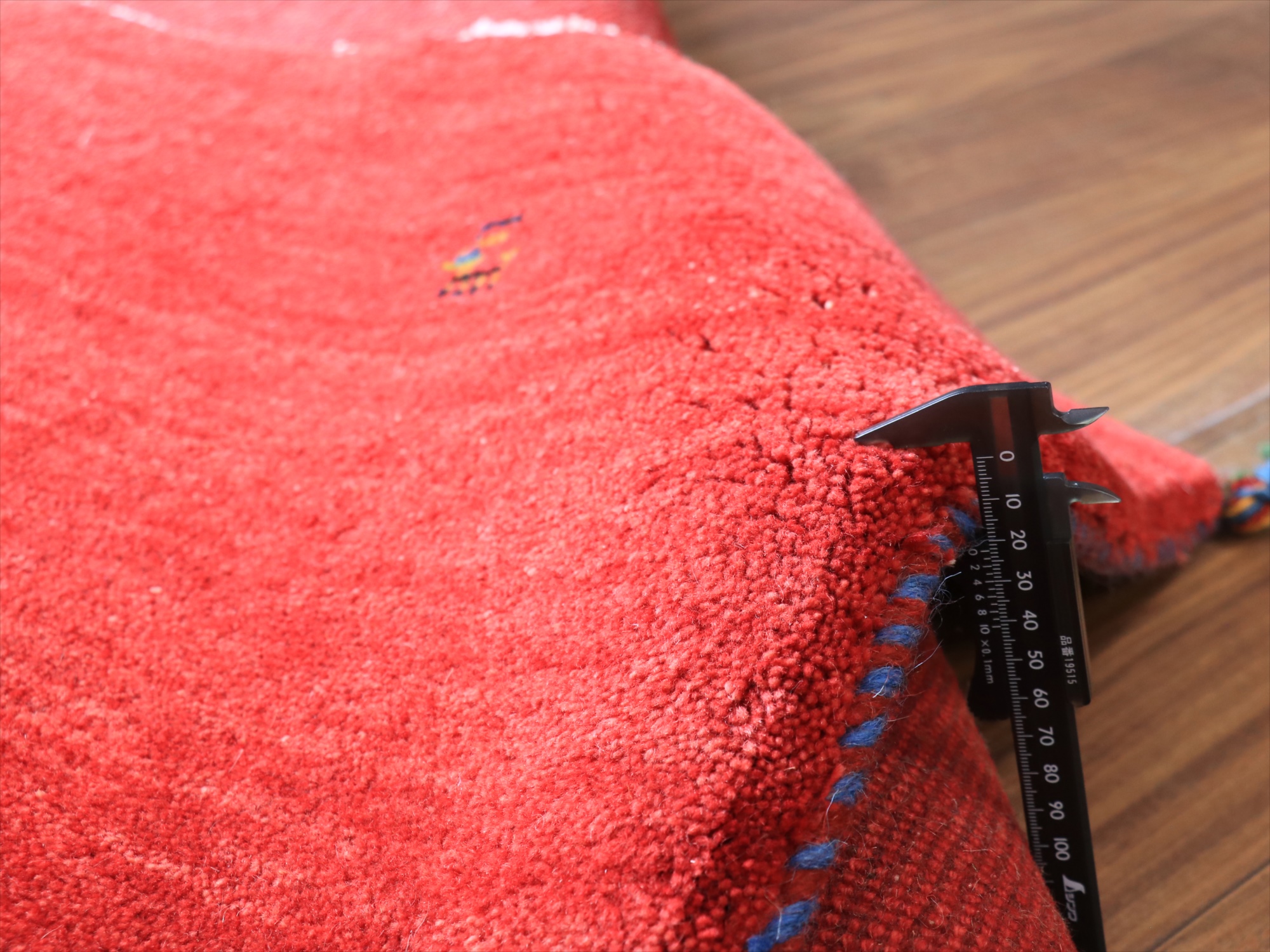 毛足(パイル)が長く、ふかふかとしたボリュームのある織りのギャッベです。ベースを含めたラグ全体の厚みは2.0-2.2cm程度。