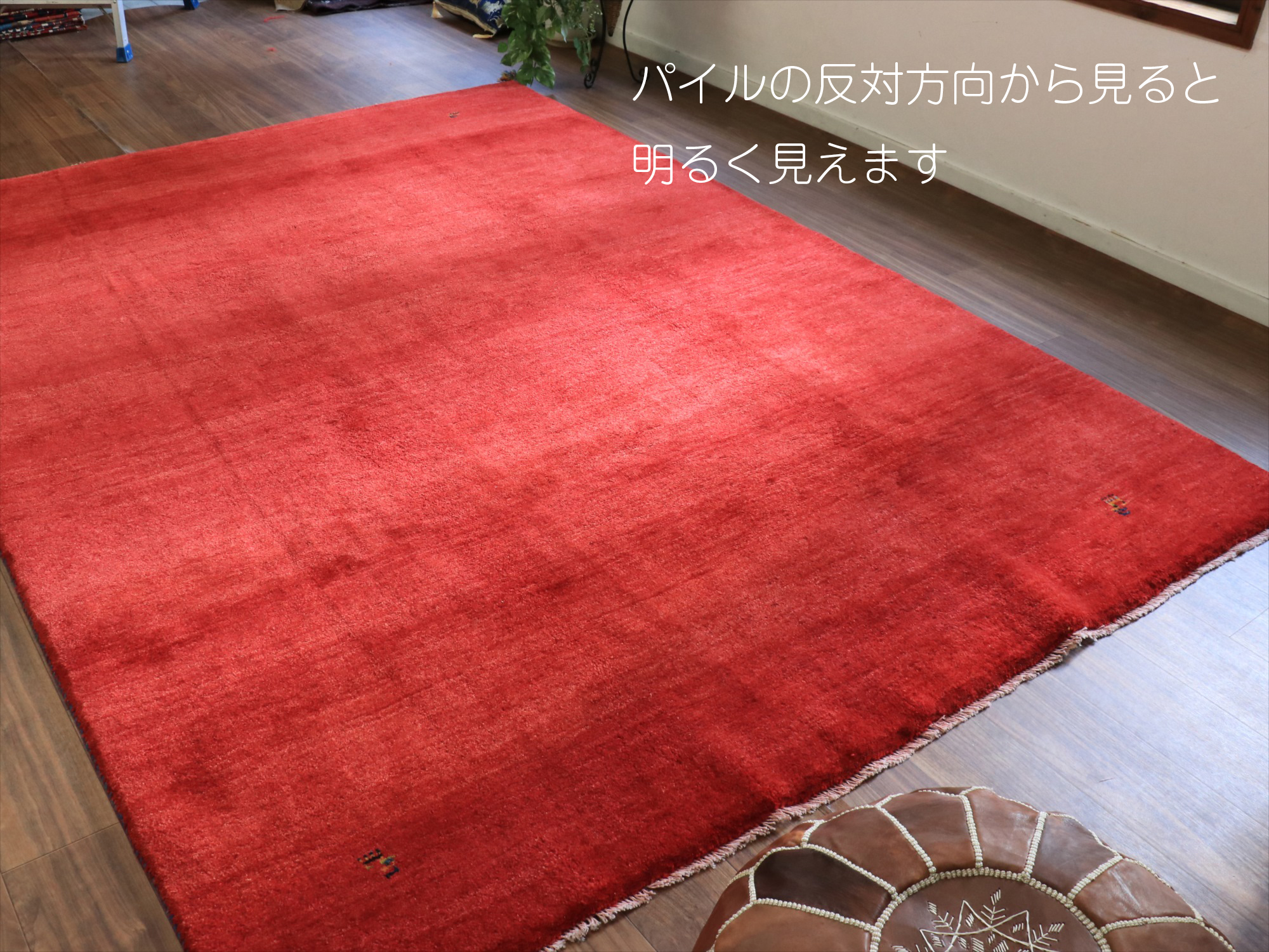 ギャッベ イラン産手織りラグ 283x200cm レッド シンプル 無地