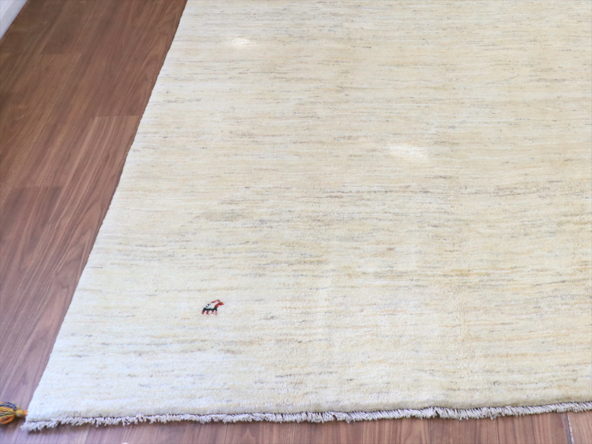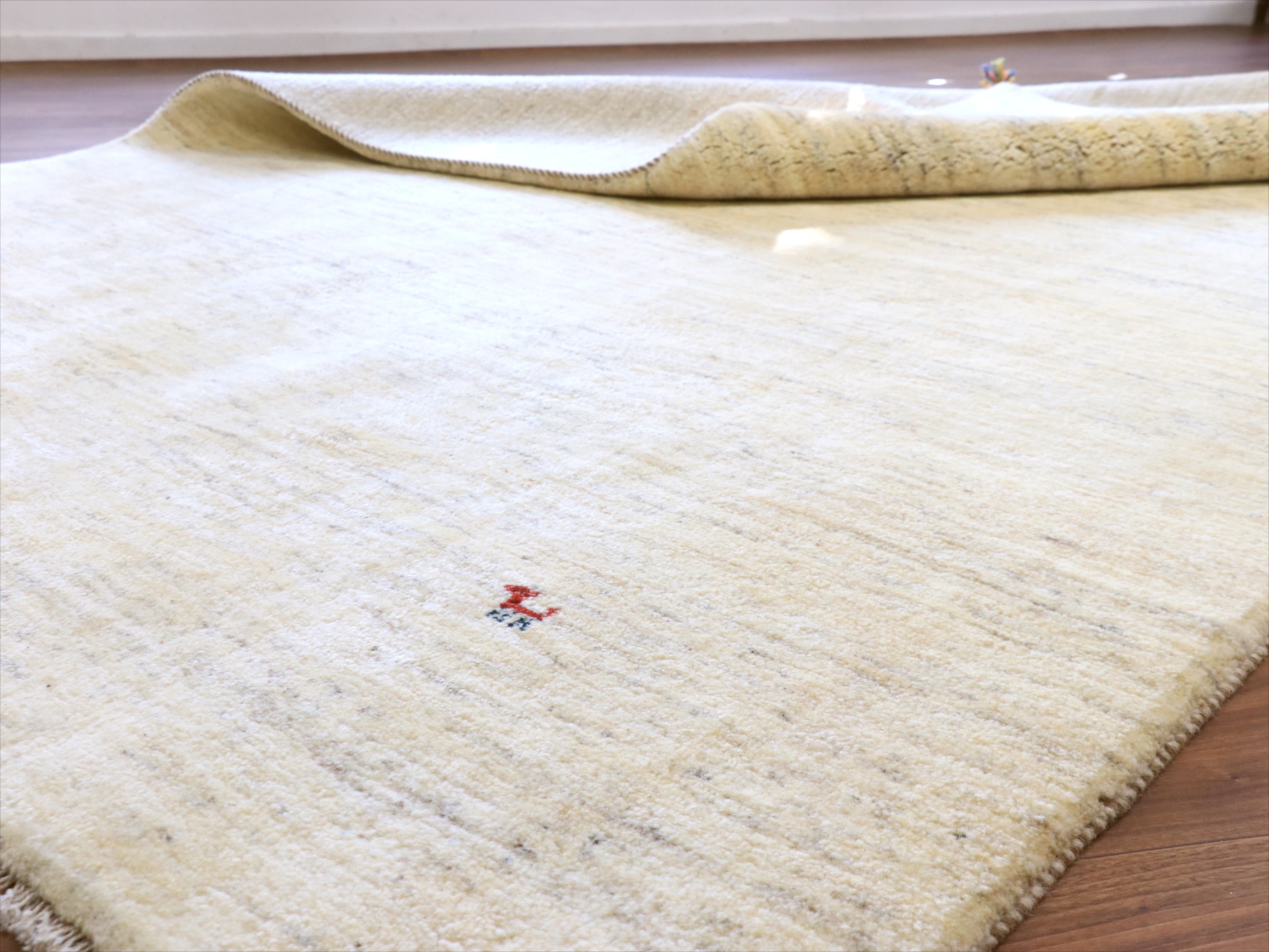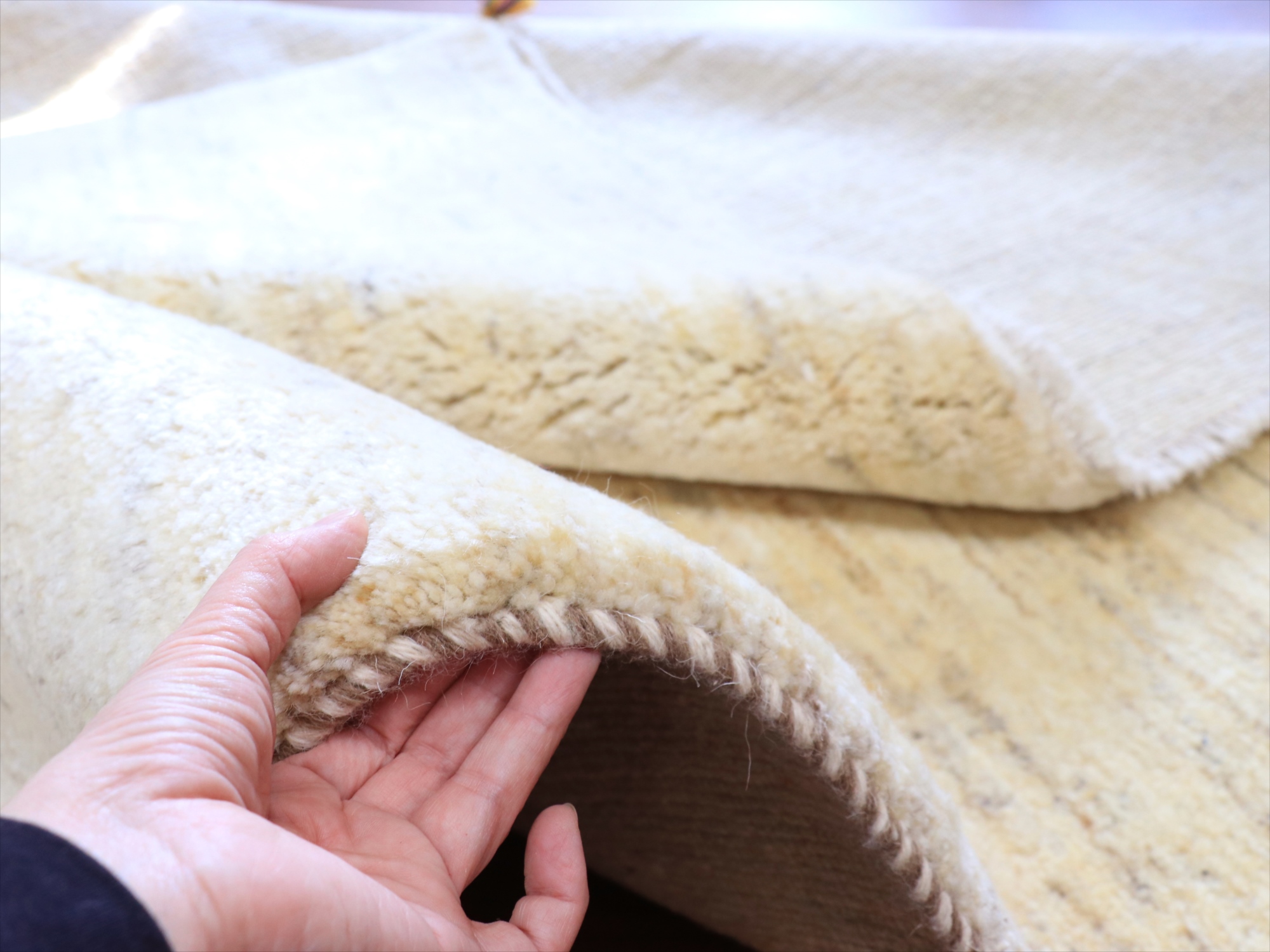 ギャッベ イラン産手織りラグ 292x200cm シンプル 無地 ナチュラルアイボリー ベージュ