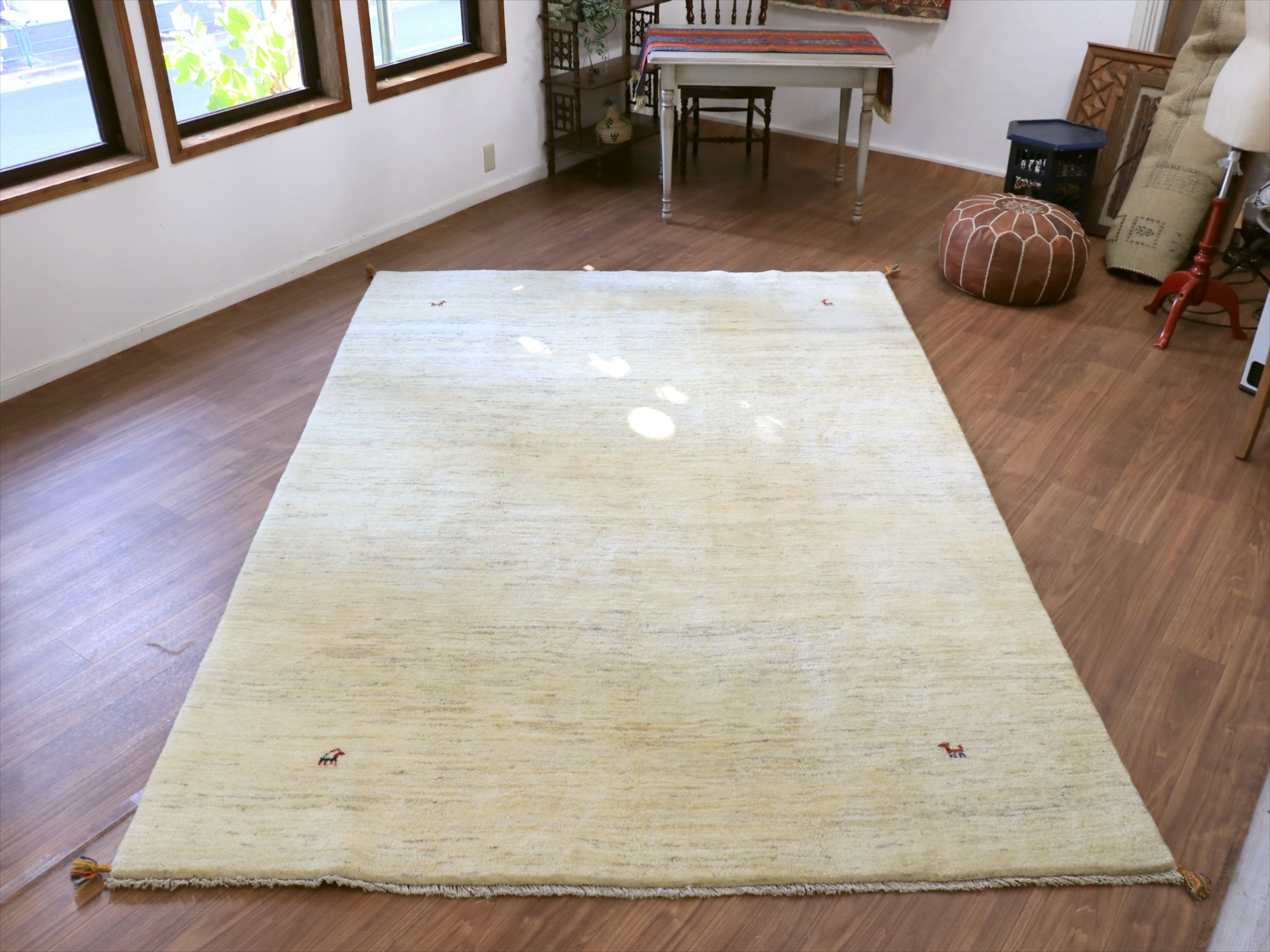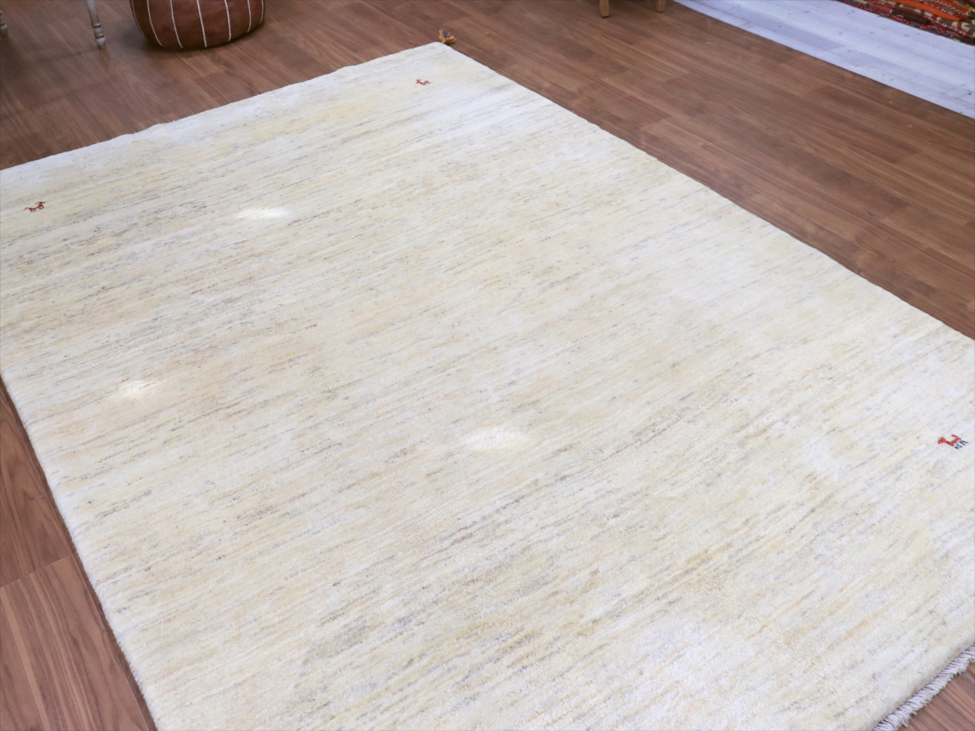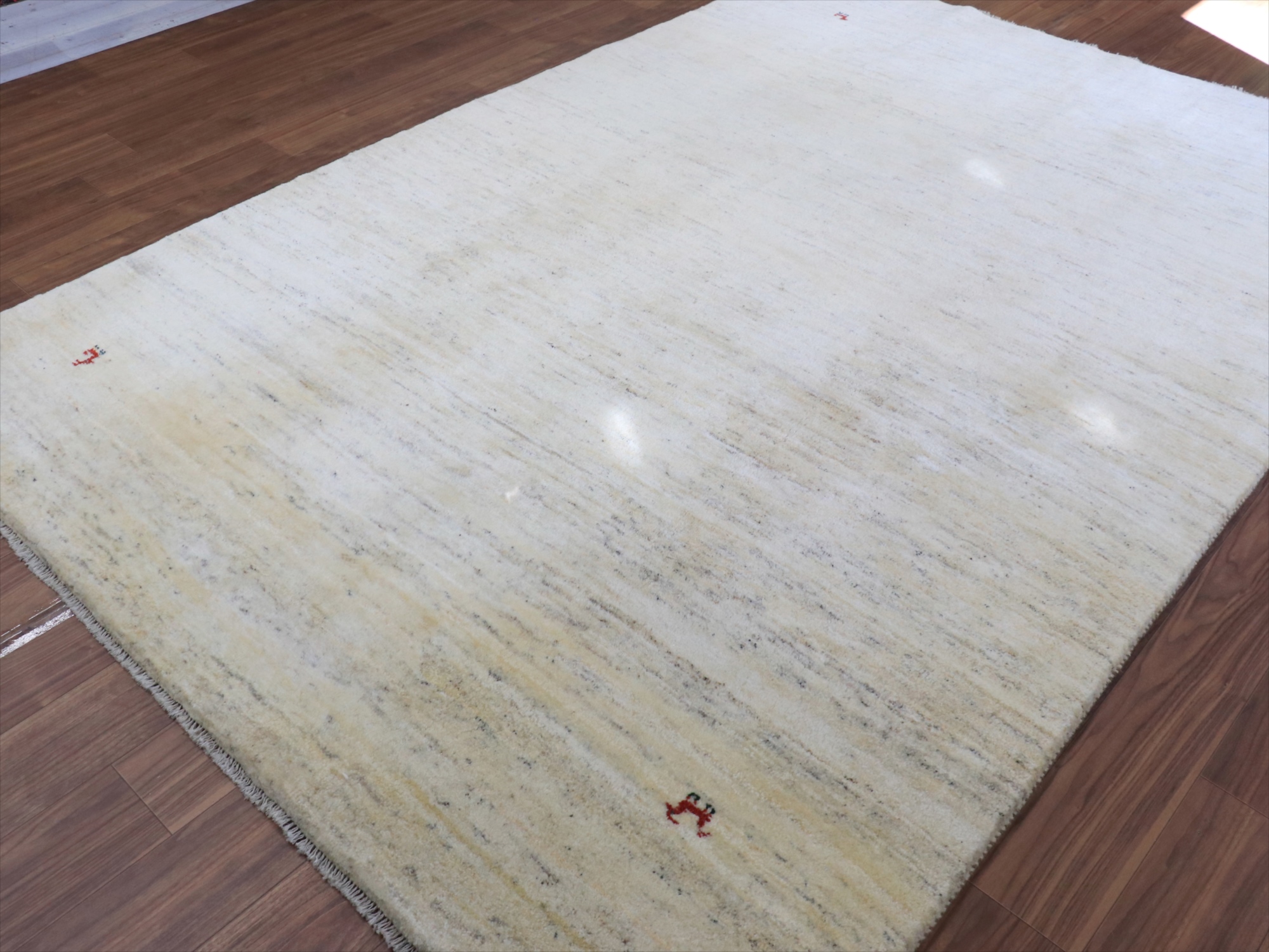ギャッベ イラン産手織りラグ 292x200cm シンプル 無地 ナチュラルアイボリー ベージュ
