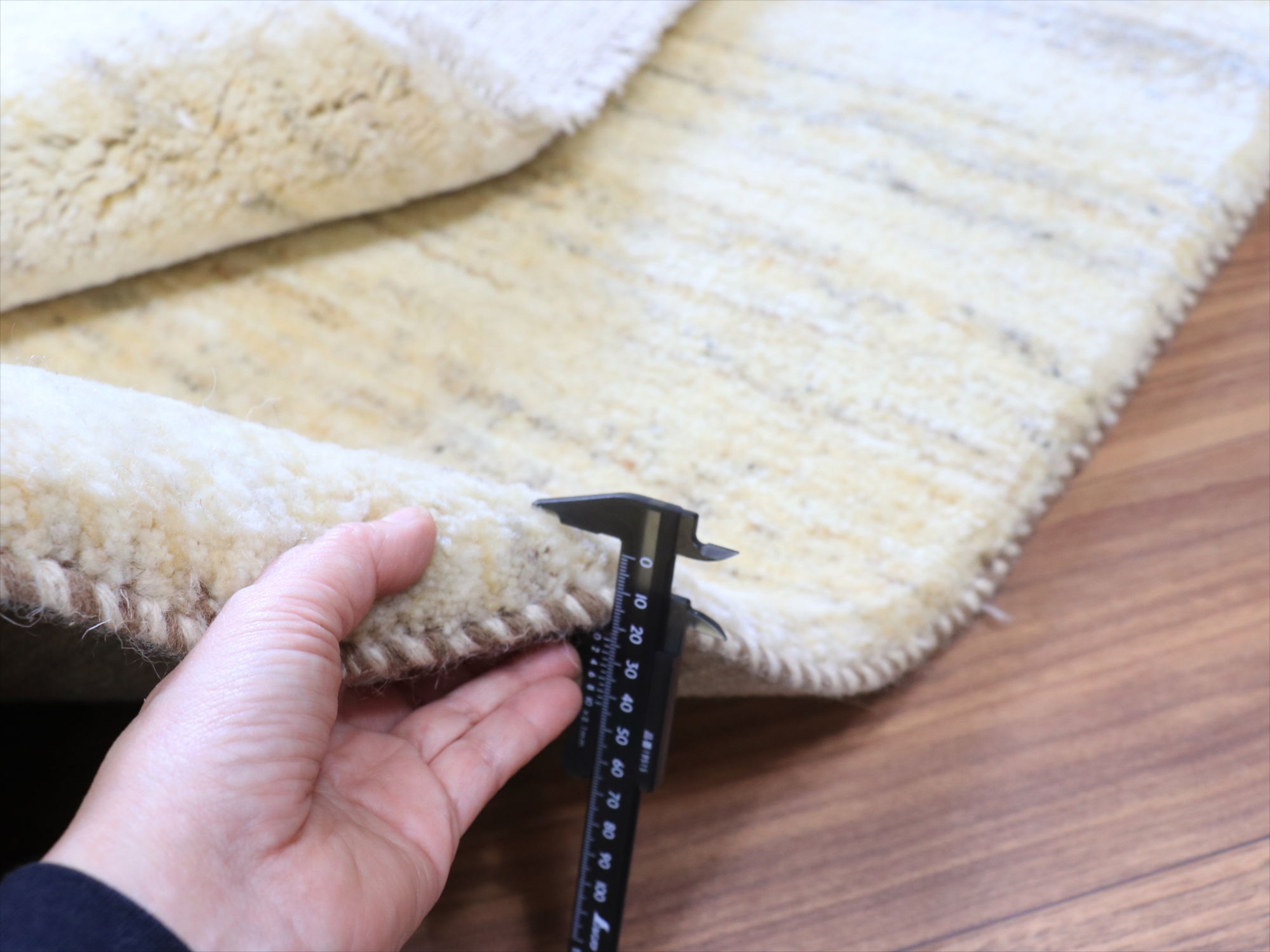 パイル(毛足)を含めた厚みは2.4-2.5cmほどで、分厚いという表現がぴったりの手織り絨毯です。