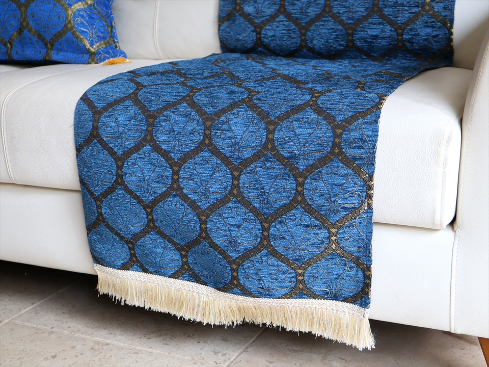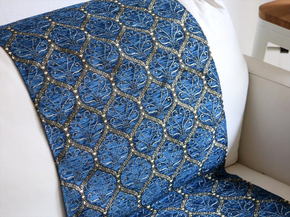 テーブルランナー ベッドスロー 135×44cm クレスト ネイビー Table runner, Bed through, Turkish textile, トルコ製ファブリック