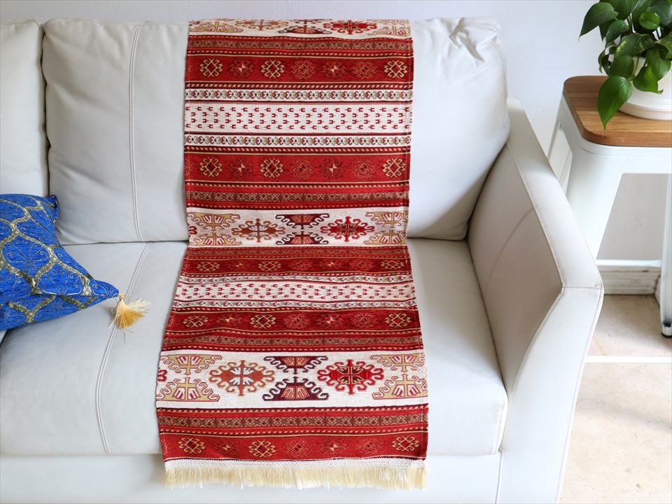 テーブルランナー ベッドスロー 135×44cm アジデルハ アイボリーTable runner, Bed through, Turkish textile, トルコ製ファブリック