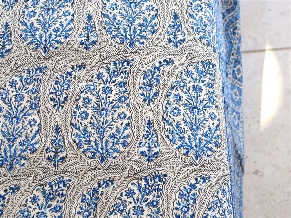 Key:コットン 染色 ブロックプリント 木版 伝統工芸 フリークロス マルチカバー ベッドスプレッド ベッドカバー ソファカバー カーテン タペストリー 背景 ファブリック インテリアファブリック インテリア ペルシャ イラン シルクロード アジアン エスニック ペイズリー 280cmサイズ