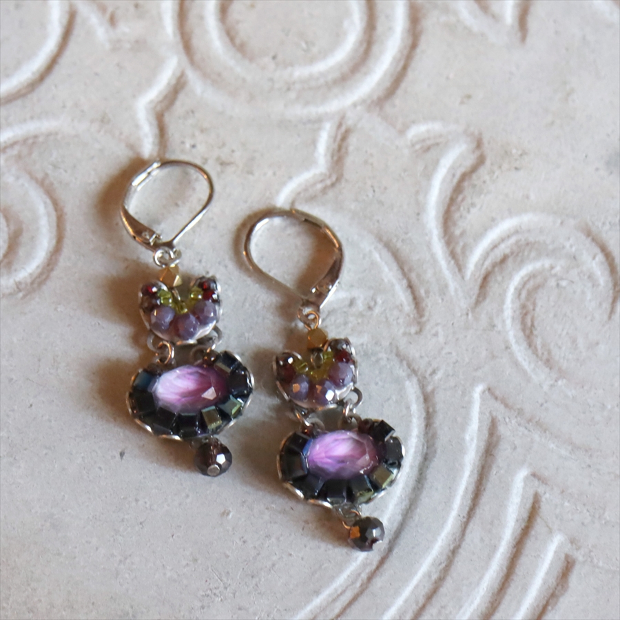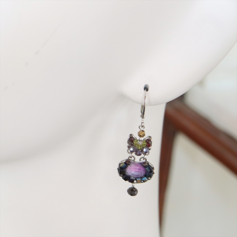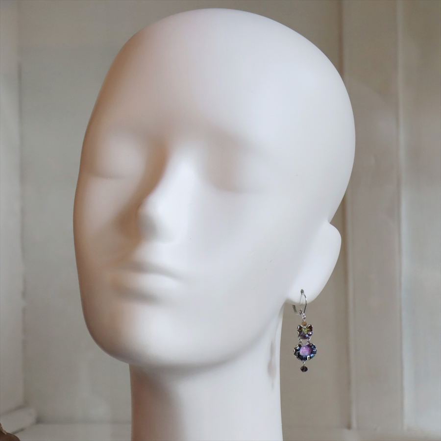 深みあるインディゴとパープルのミステリアスな雰囲気のSilent Shadowsという名のシリーズ。耳元で煌めくビーズが揺れるエレガントなピアスです。