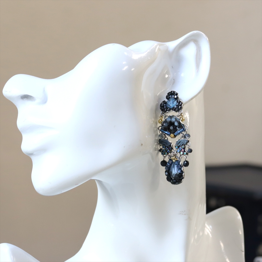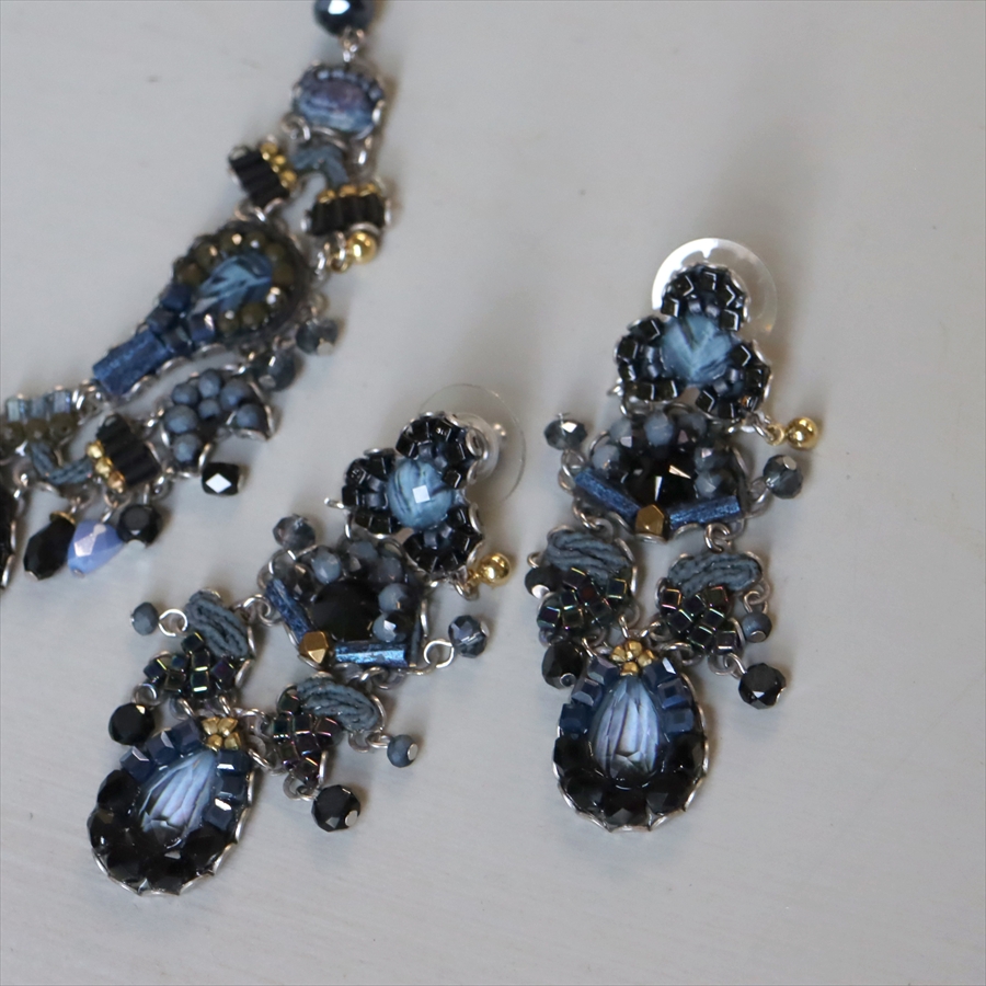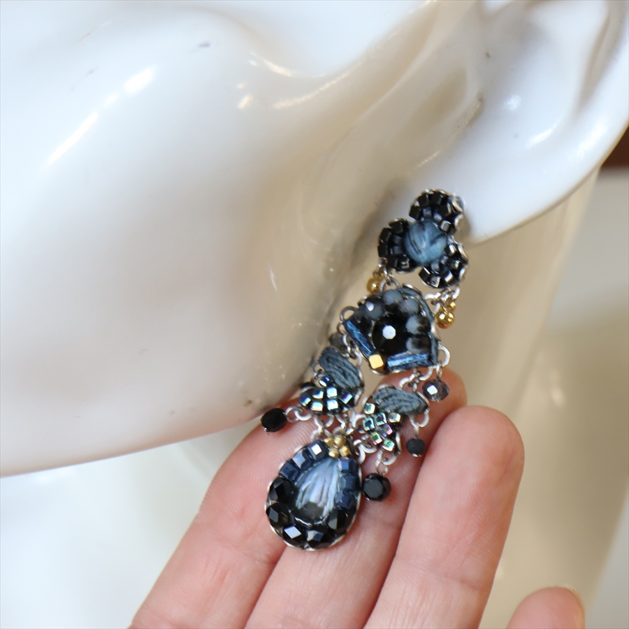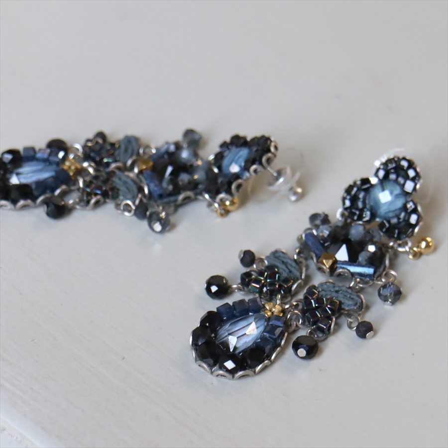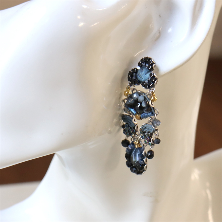 深い藍色の静かなる美しい孤高の世界観のIndigo Summitsという名のシリーズ。細やかなビーズで美しいブルーグラデーションが魅力のピアスです。
