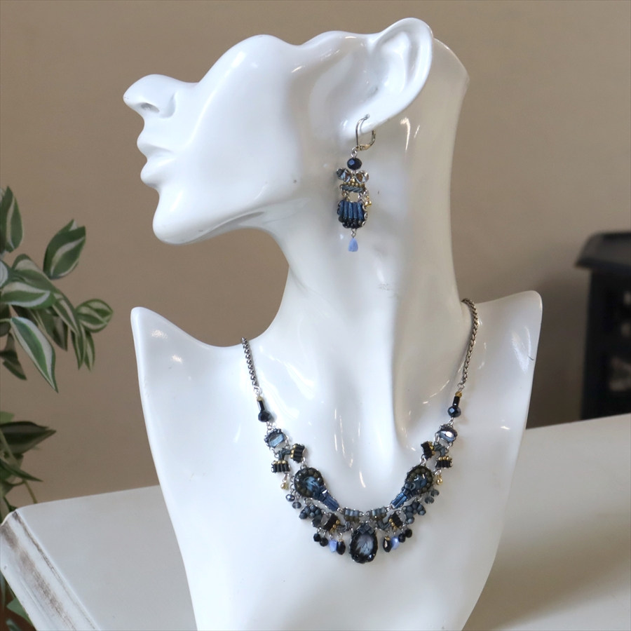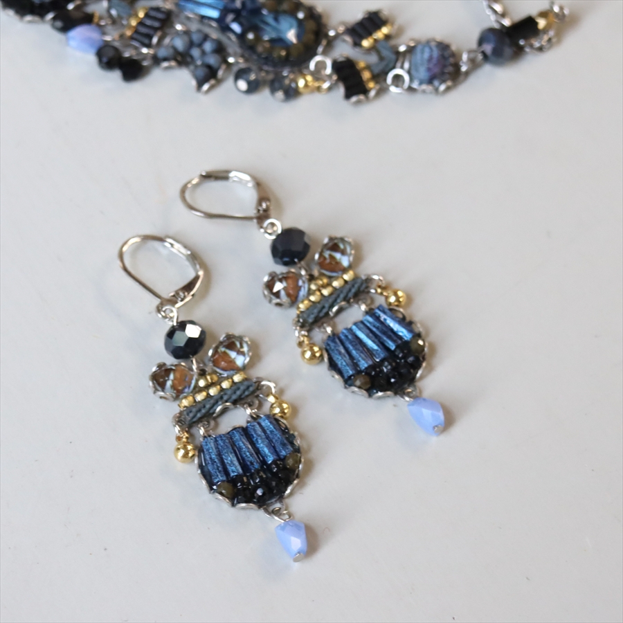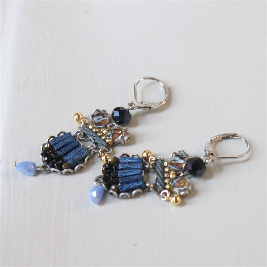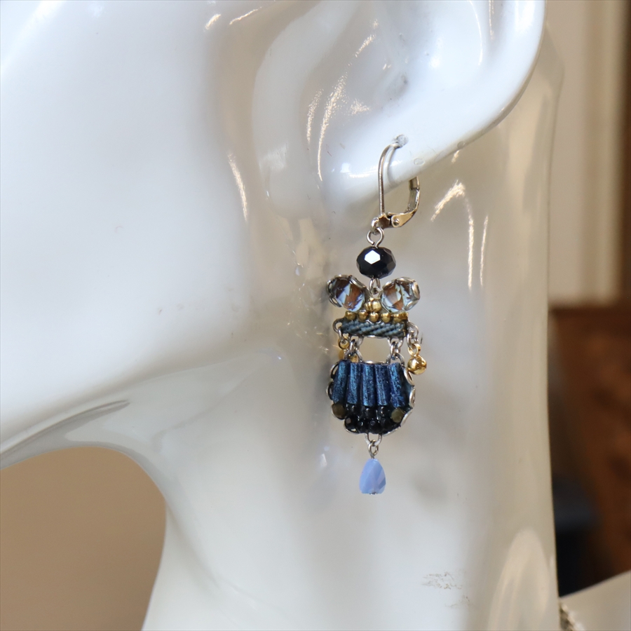 深い藍色の静かなる美しい孤高の世界観のIndigo Summitsという名のシリーズ。細やかなビーズで美しいブルーグラデーションが魅力のピアスです。
