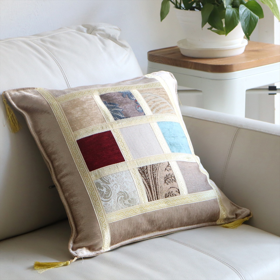 - シュニール素材 モザイククッションカバー 45cmサイズ パッチワーク