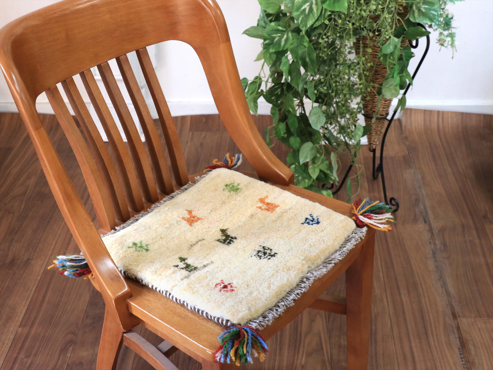 ふかふかした毛足(パイル)で、手触りが気持ちいい手織りのギャッベ。ミニサイズなので、座布団代わりに敷くのはもちろん、ダイニングチェアに敷いたり、絵画のように壁に貼ってデコレーションとしても楽しめます。手織りならではの一枚一枚違ったテイストをお楽しみください。