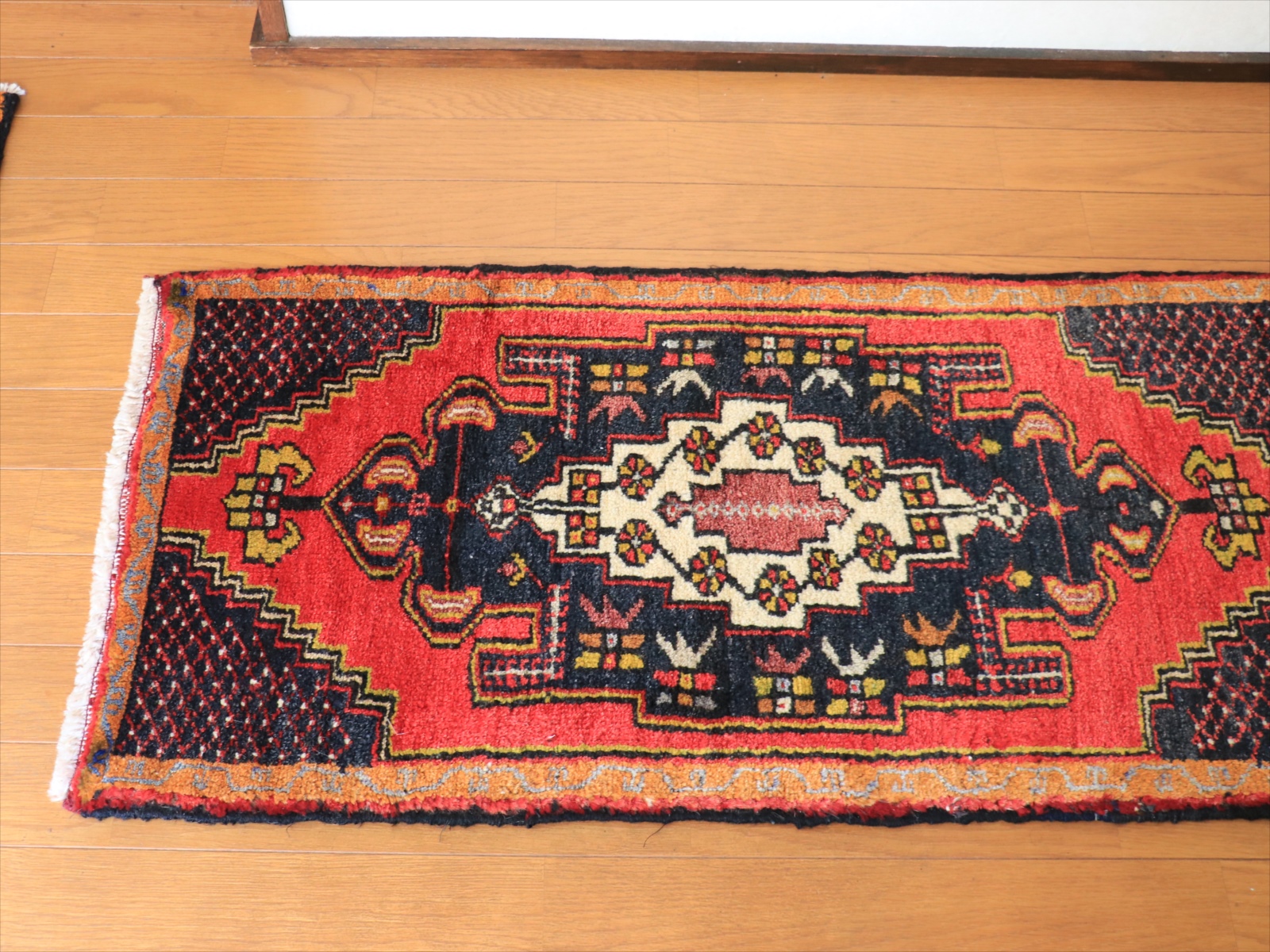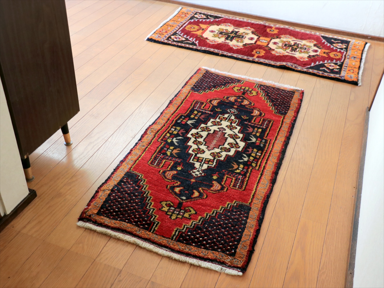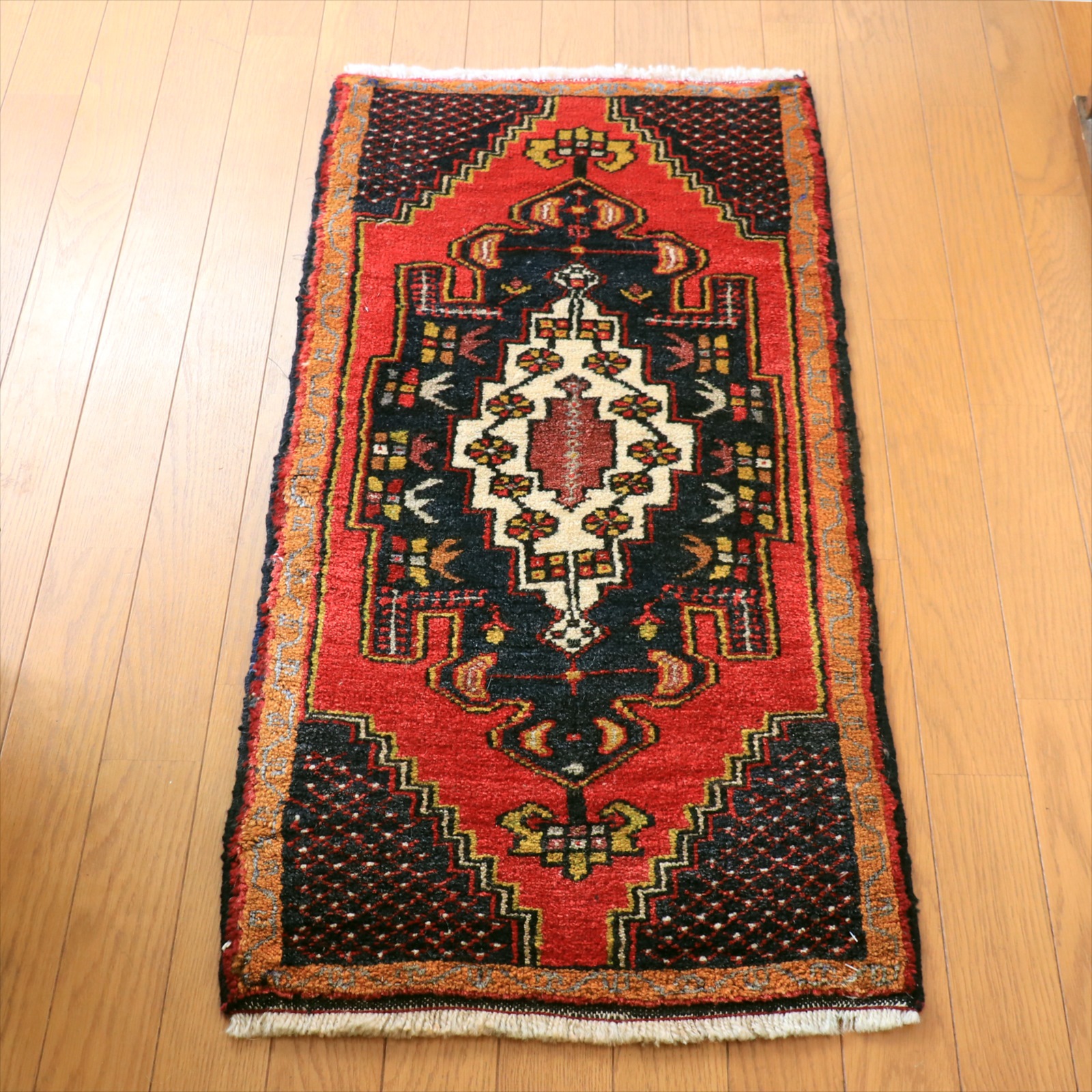 トライバルラグ ヤストゥク トルコ手織り絨毯100×48cm シワス レッド&ブラック