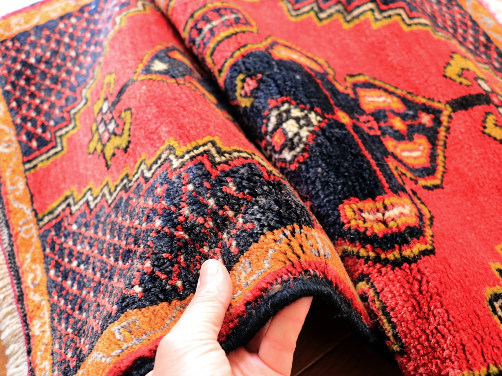 - トライバルラグ ヤストゥク トルコ手織り絨毯100×48cm シワス レッド&ブラック