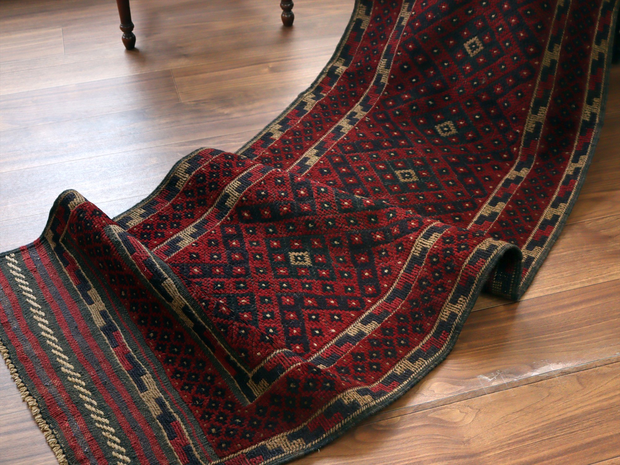 - オールドキリム アフガニスタン ミシュワニ275×64cm 幾何学模様 細長サイズ