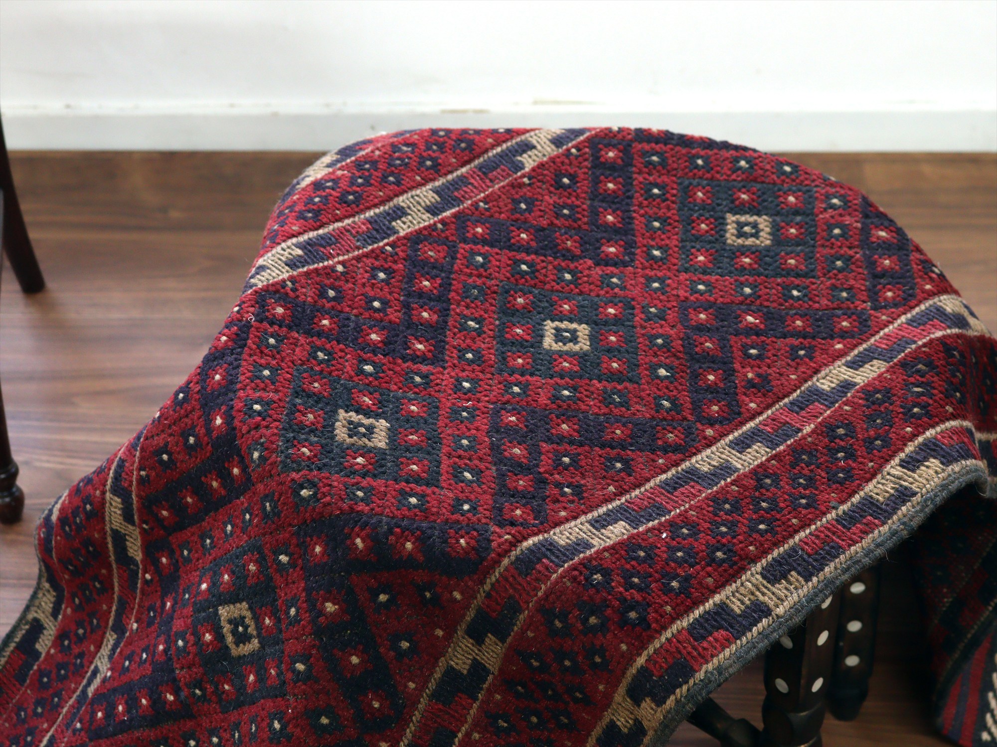 アフガニスタン東部、イランと国境を接するエリアの緻密な織りのキリムです。細かい織り目のスマック織りをベースに、立体感のあるカーペット織りでモチーフをレリーフのように織り込んだ1枚。