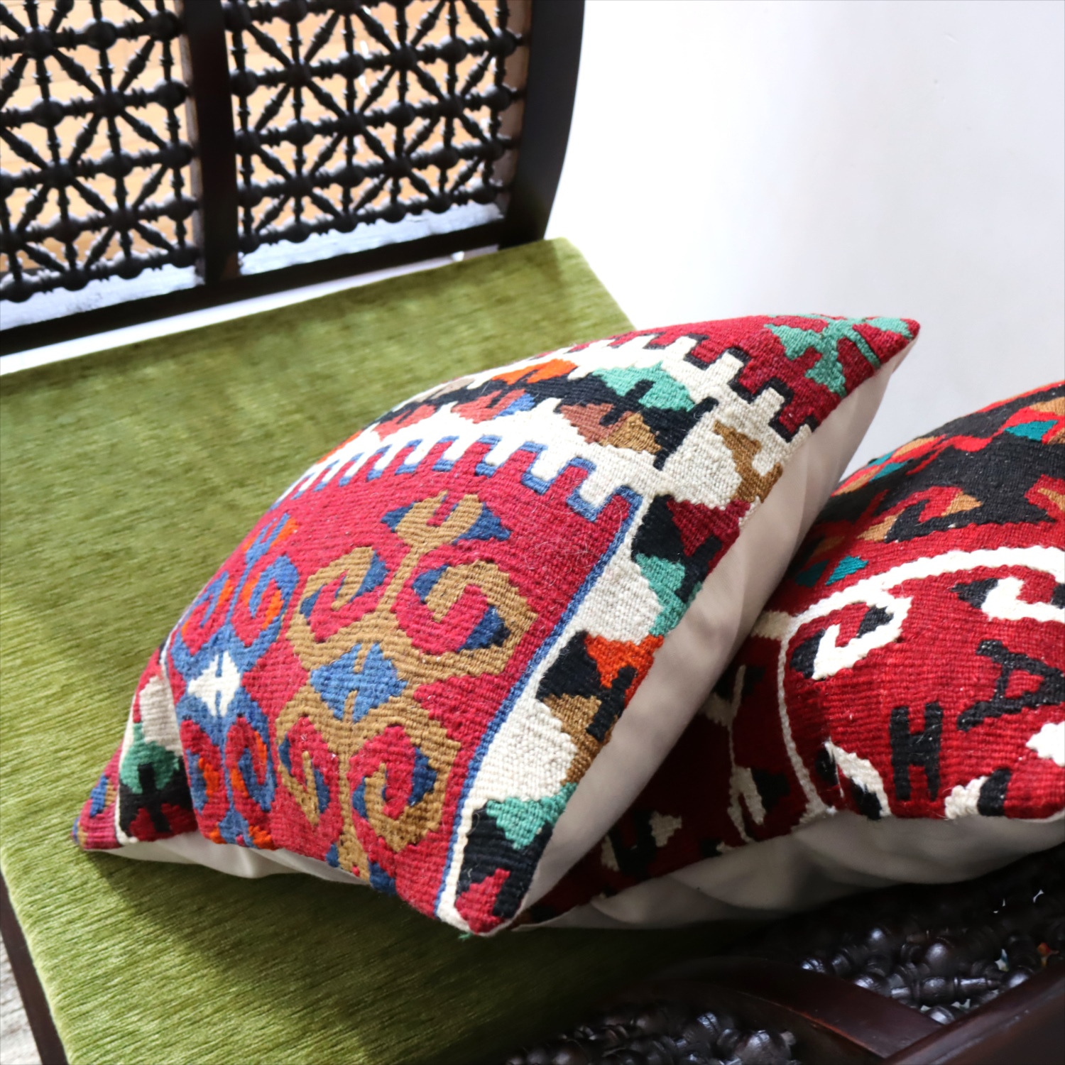 Key:Old Kilim, Kilim Cushion, Turkish Kilim, BOHO, Bohemian Decor, Vintage kilim, クッションカバー, オールドキリム, トルコ, ヴィンテージキリム, トライバルラグ, ピロー, ボヘミアンスタイル, BO-HO, ウール100%, 手織り, 一点もの, ガラタバザール