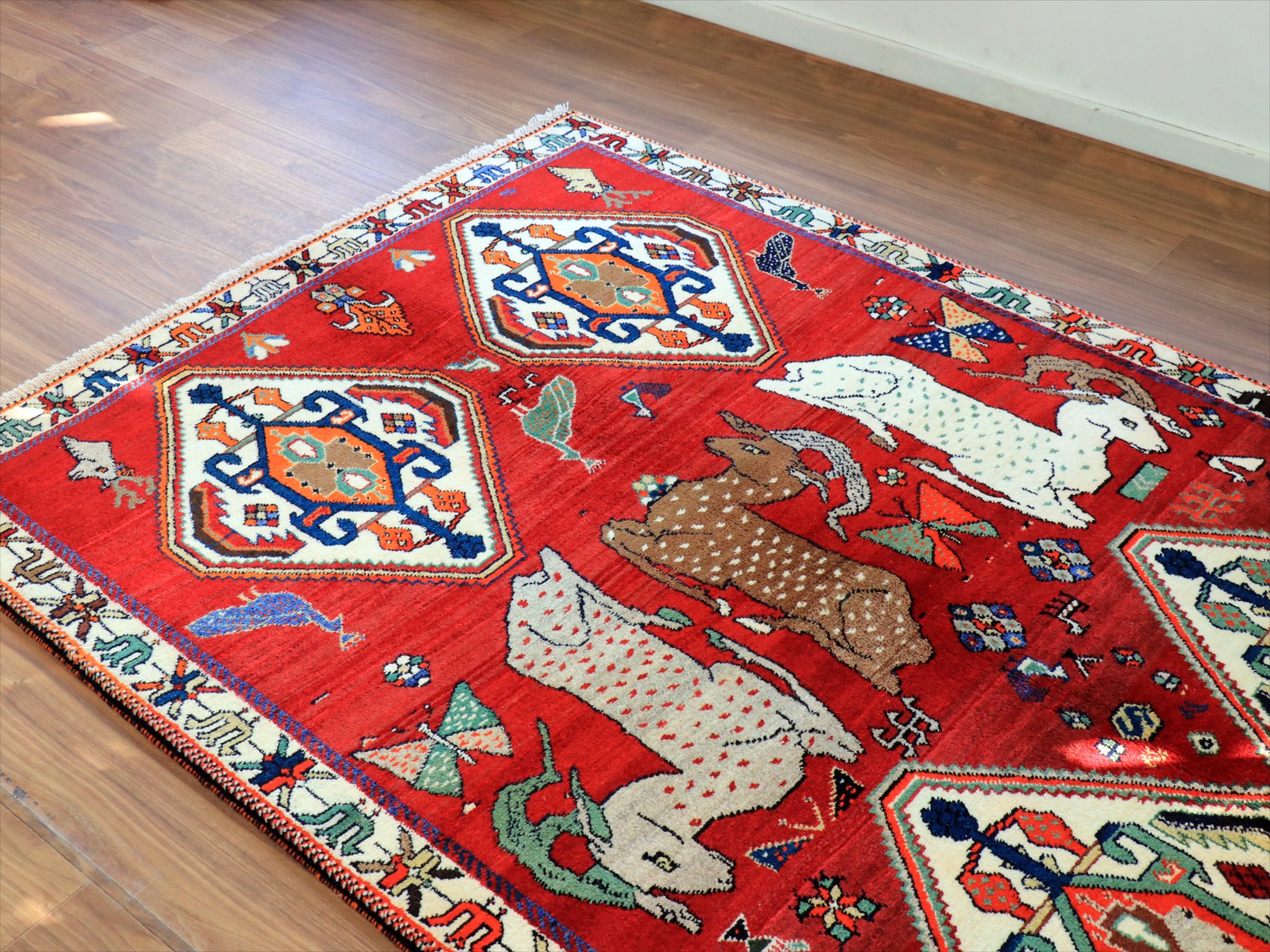 - オールドギャッベ カシュカイ トライバルラグ 185x123cm 牡鹿と4つのメダリオン