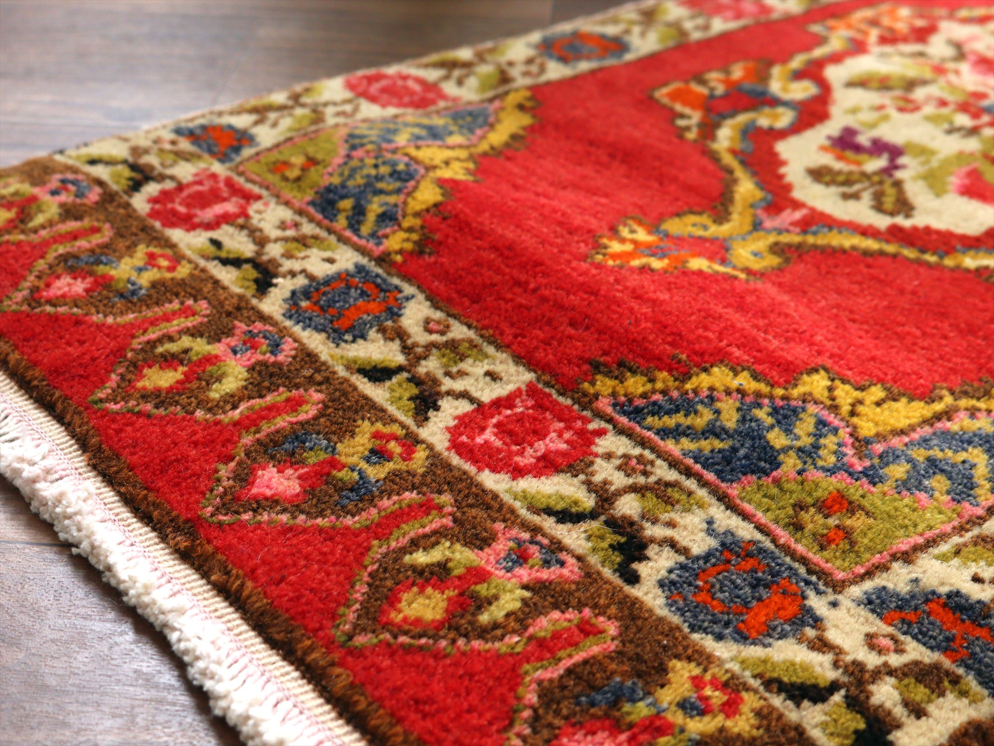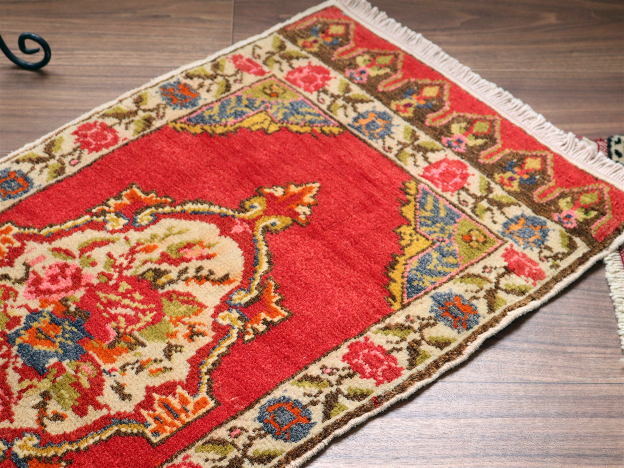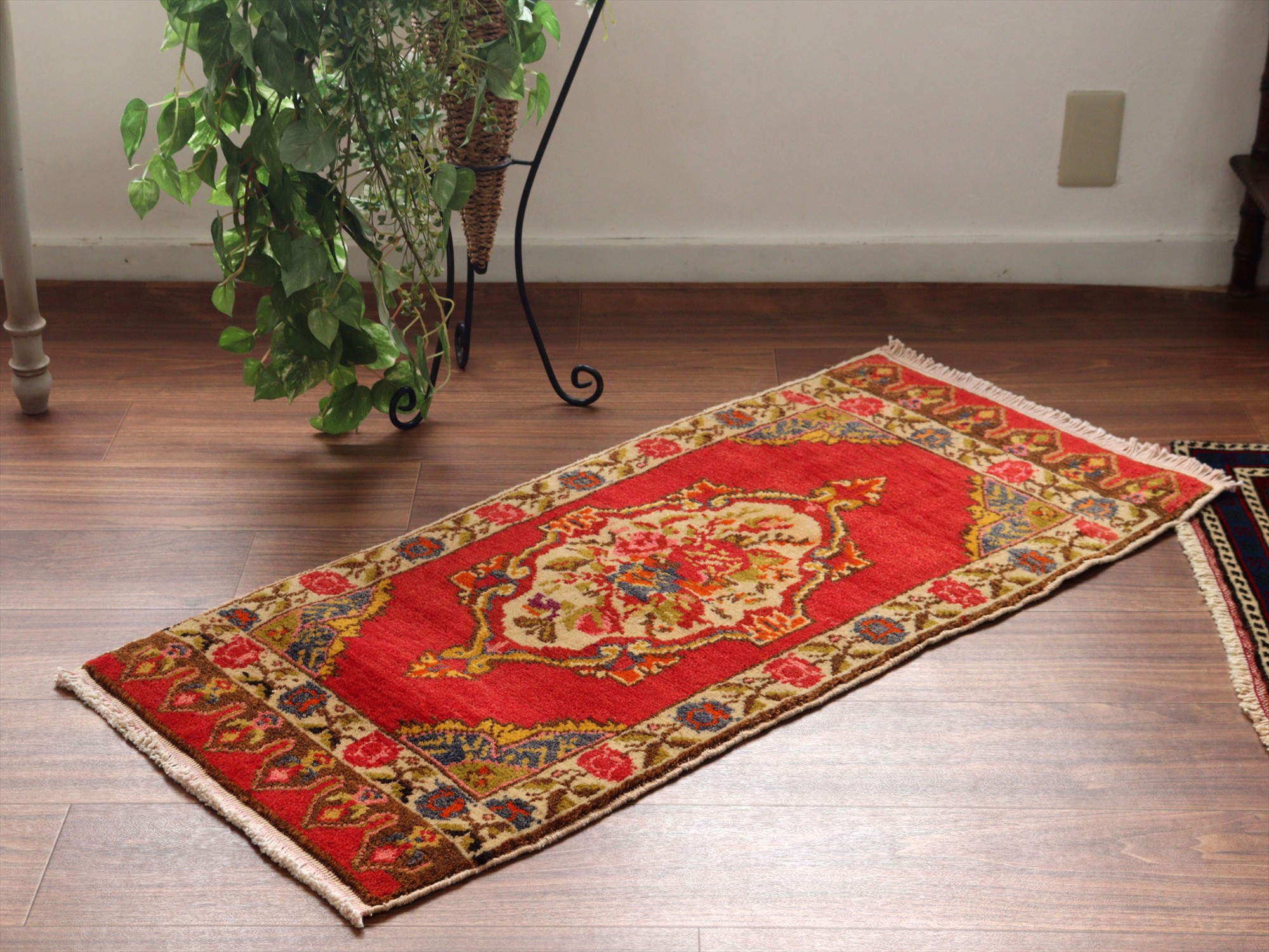 - トルコ絨毯 ヤストゥク105×49cm カッパドキア バラの花束