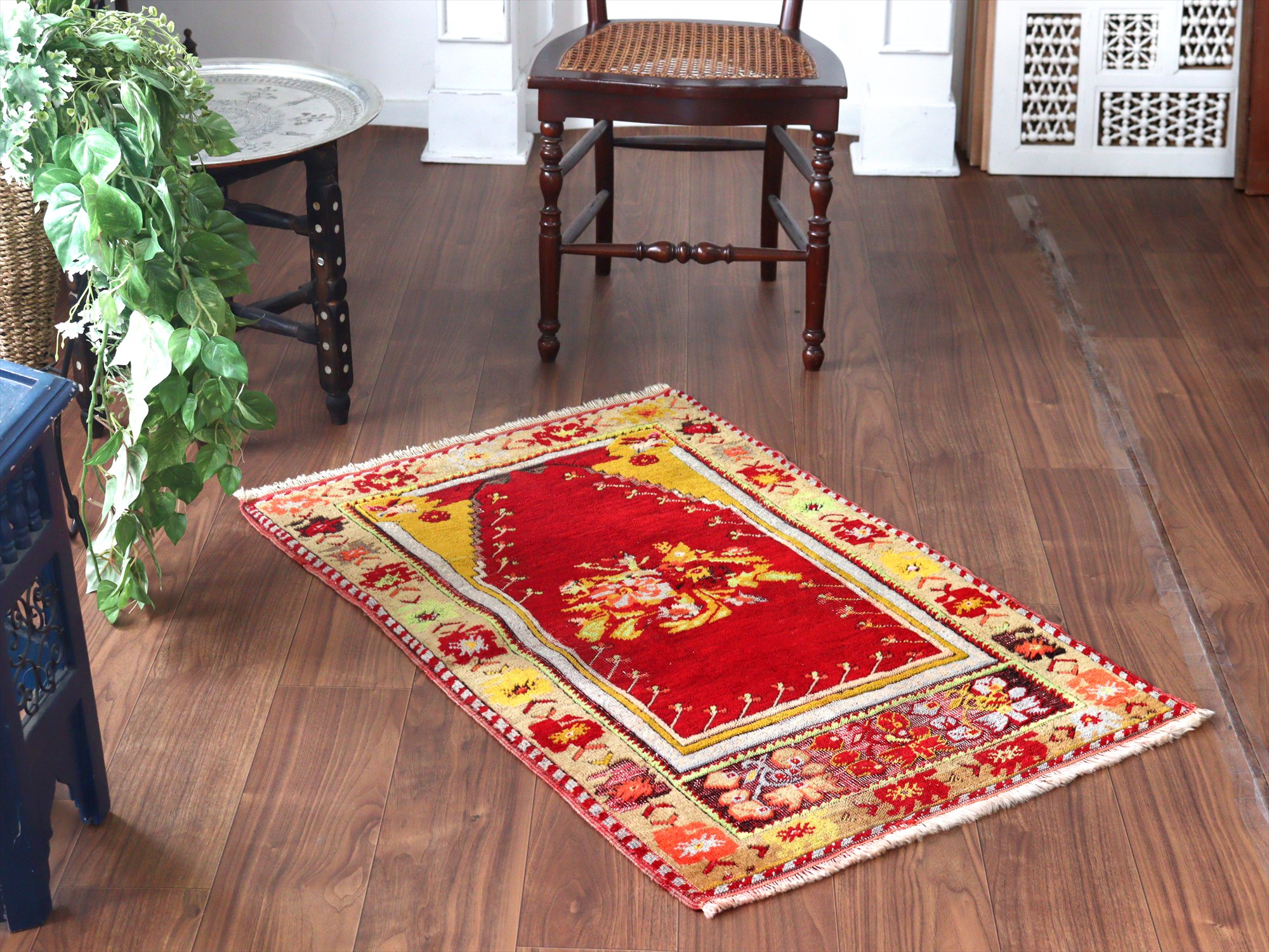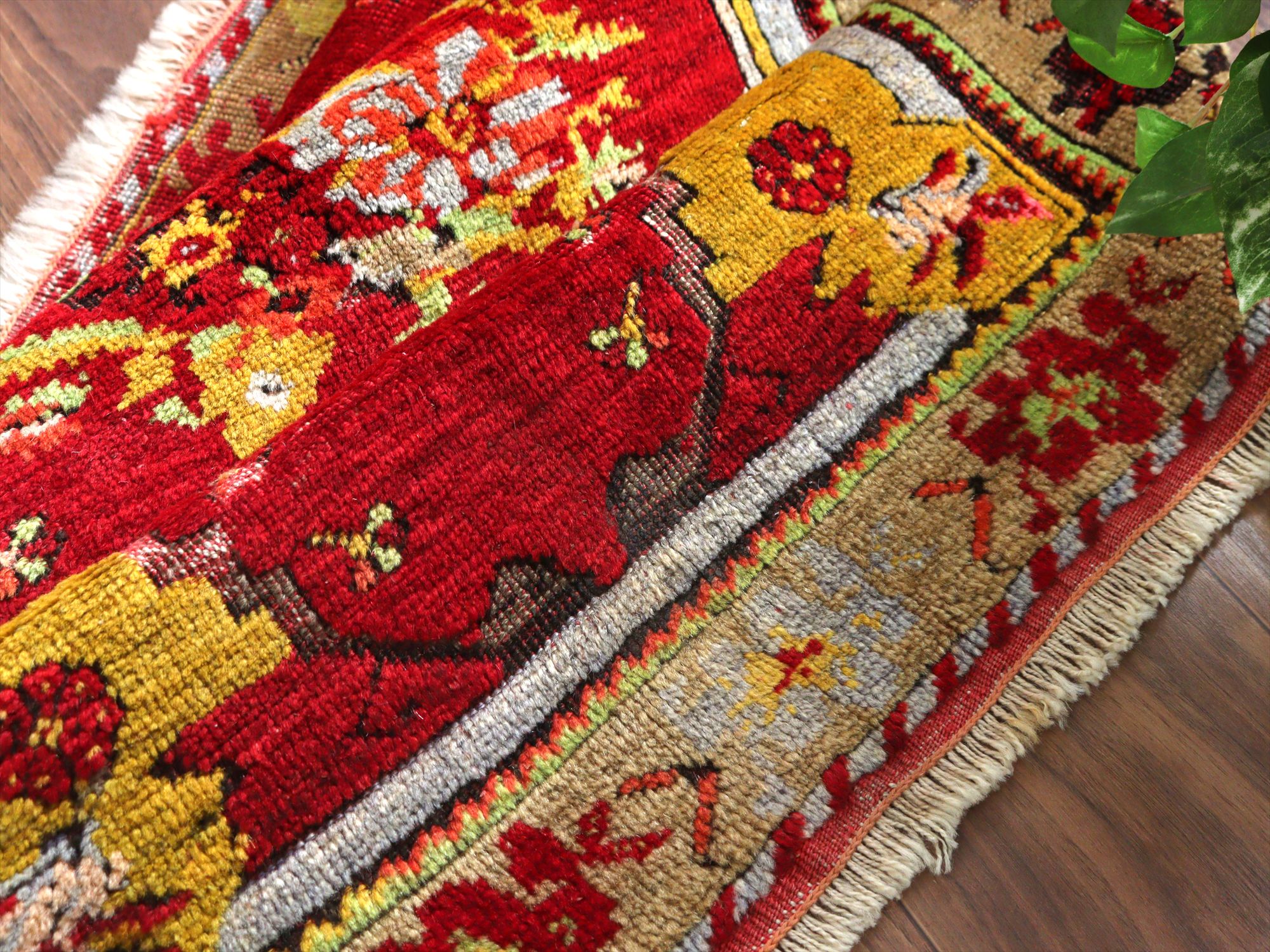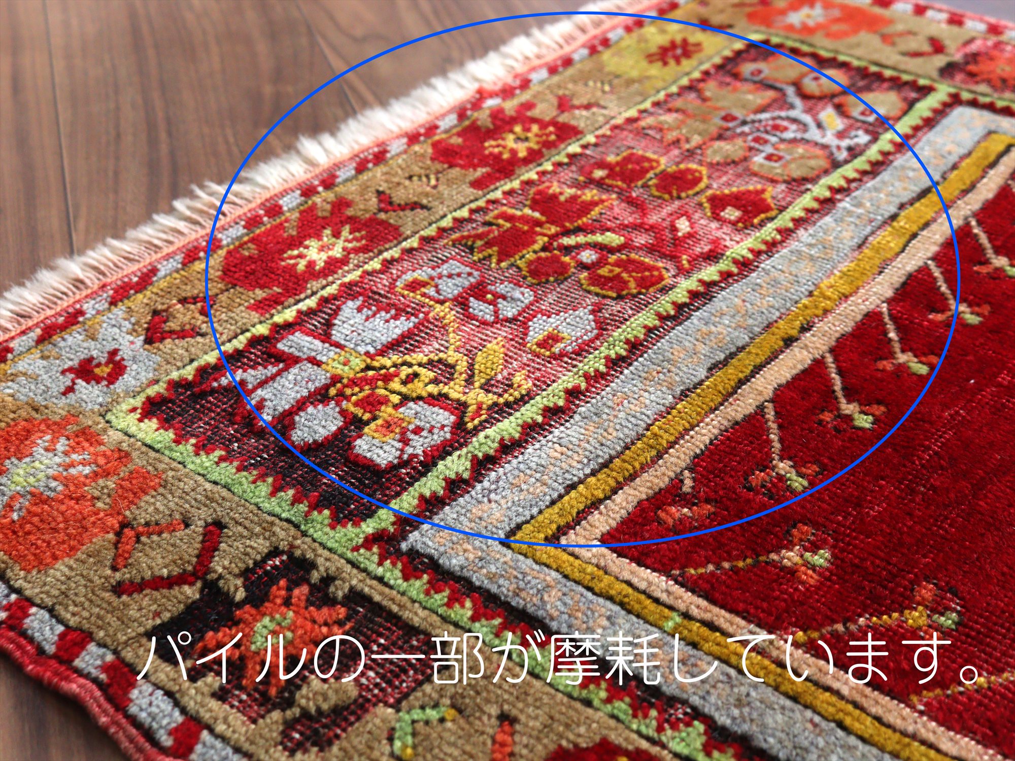 - トルコ絨毯 赤いミフラープ106×69cm フラワーデザイン オールドラグ