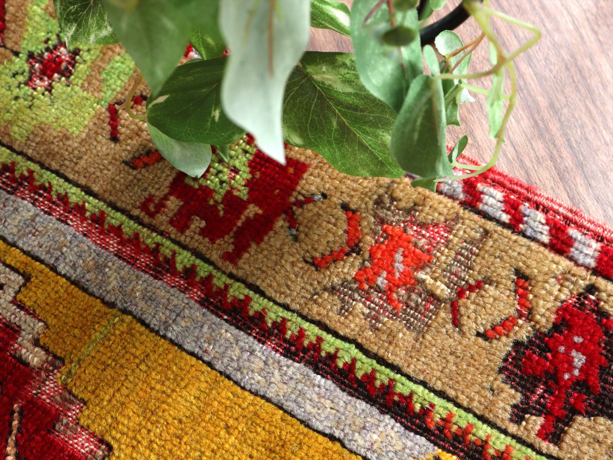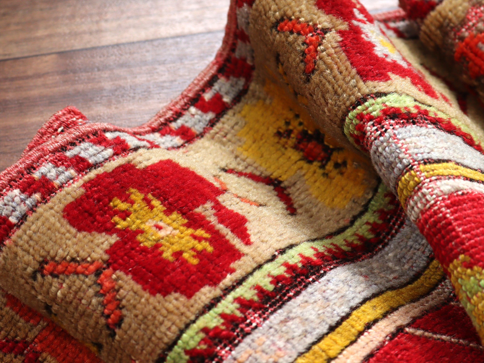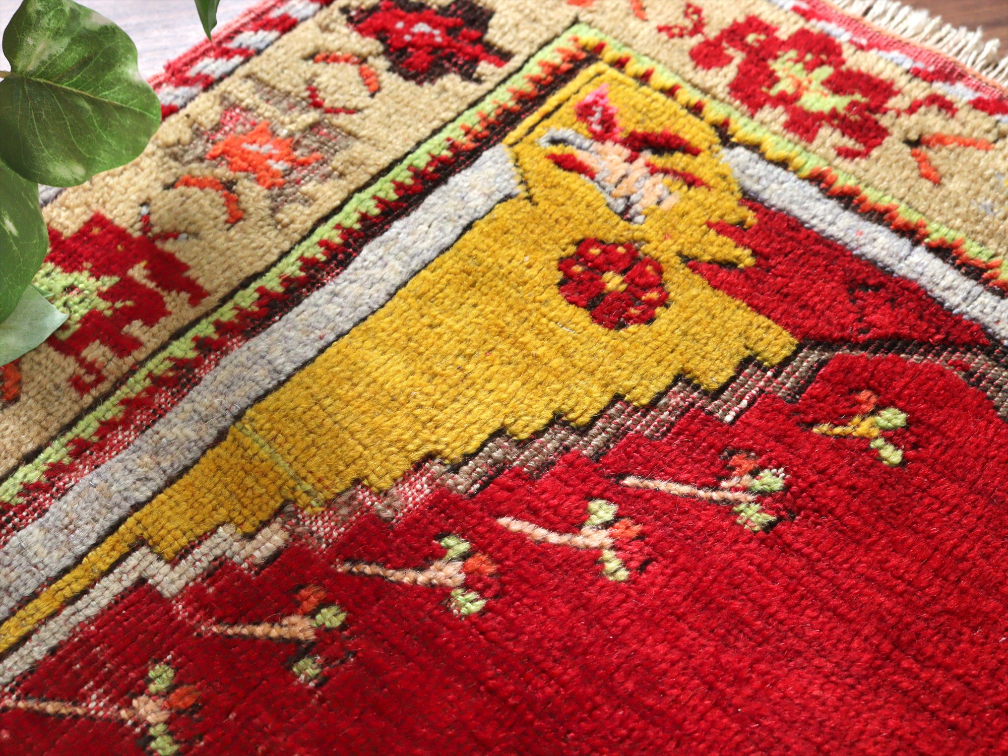 トルコ絨毯 赤いミフラープ106×69cm フラワーデザイン オールドラグ