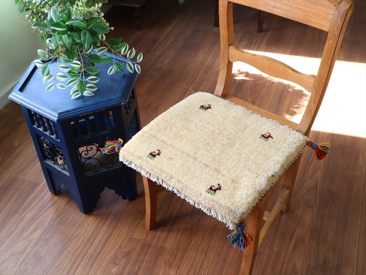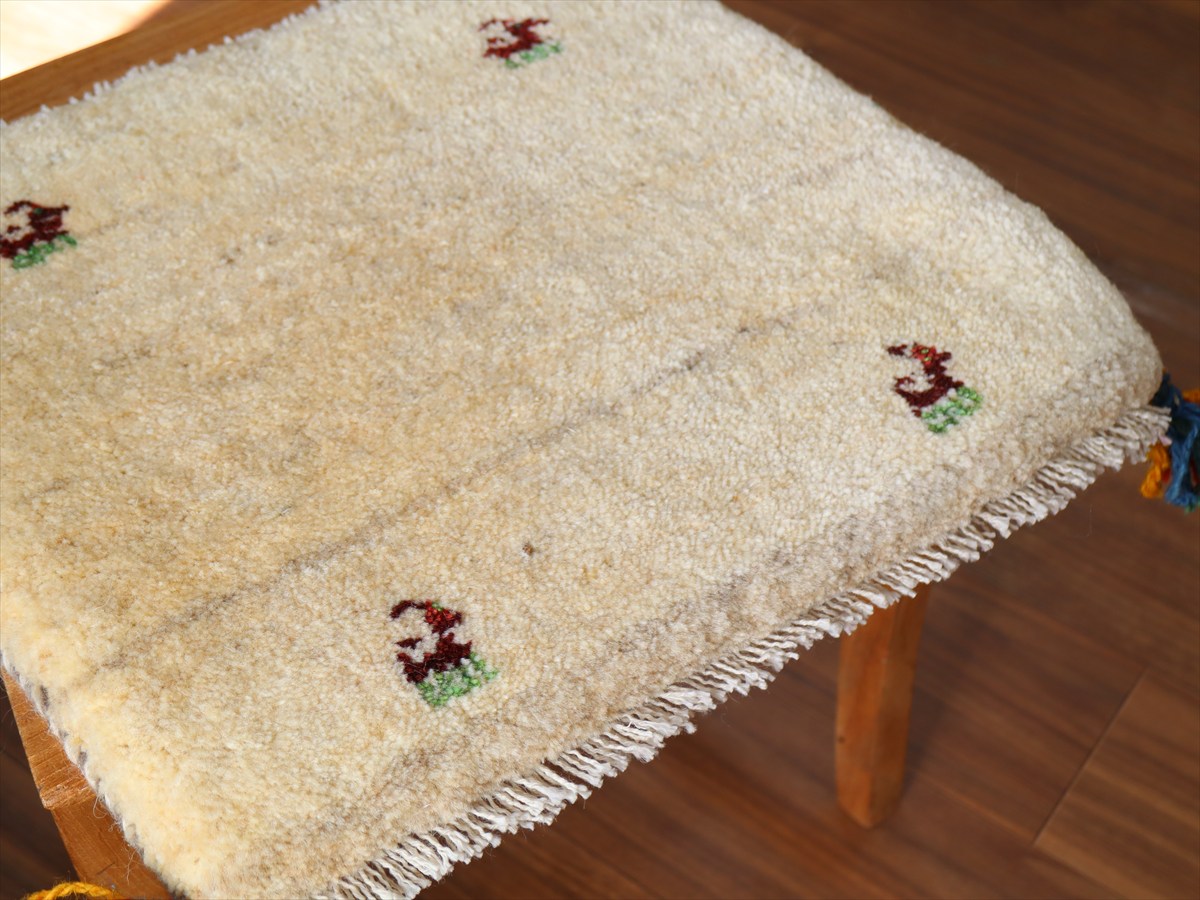 ギャッベ イラン産手織り 座布団サイズ 39×42cm ナチュラルアイボリー 動物モチーフ