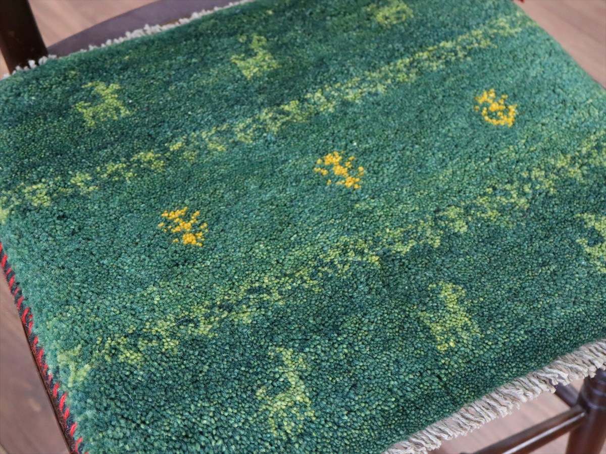 ギャッベ イラン産手織り 座布団サイズ 38×44cm グリーン 動物と生命の樹