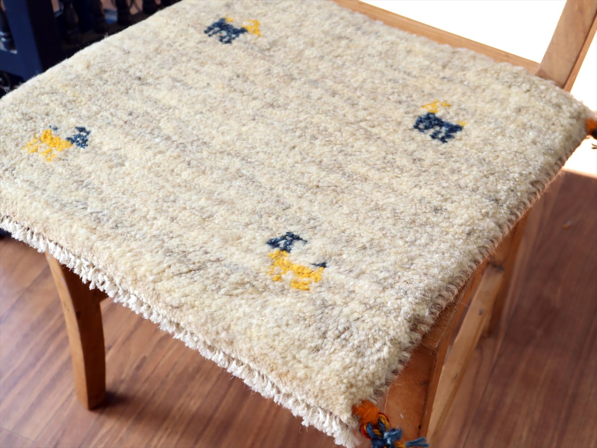 ギャッベ イラン産手織り 座布団サイズ 40×43cm ナチュラルアイボリー 動物モチーフ
