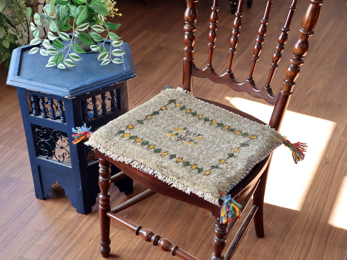ギャッベ イラン産手織り 座布団サイズ 35×41cm ナチュラルアイボリー 生命の樹と動物