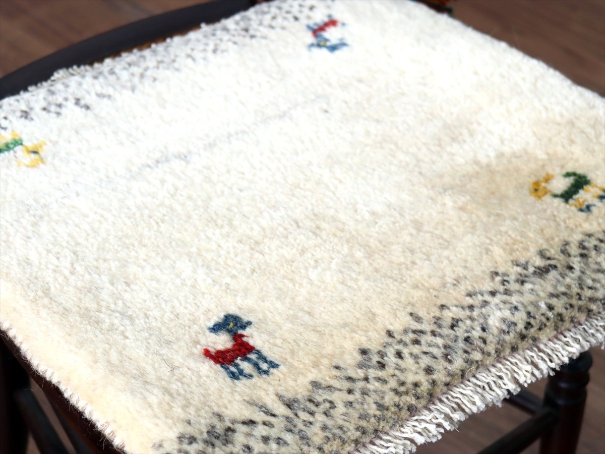ギャッベ イラン産手織り 座布団サイズ 40×45cm ナチュラルアイボリー 動物モチーフ