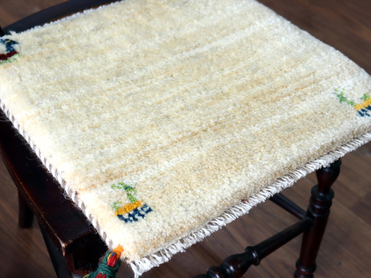 ギャッベ イラン産手織り 座布団サイズ 37×40cm ナチュラルアイボリー 動物モチーフ