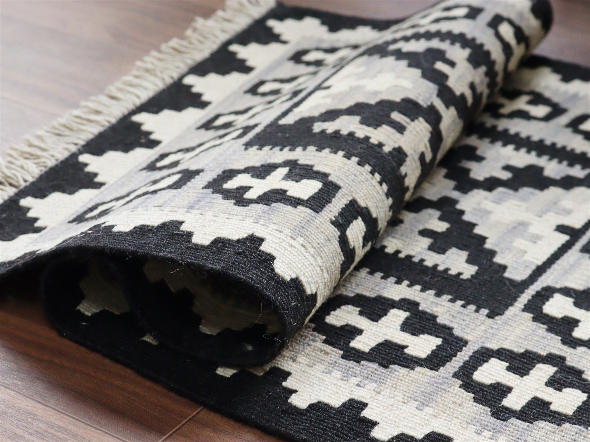 タグ:#玄関マットにおすすめキリム #染めていないモノトーンキリム #近いサイズのラグ #同じエリアのラグ