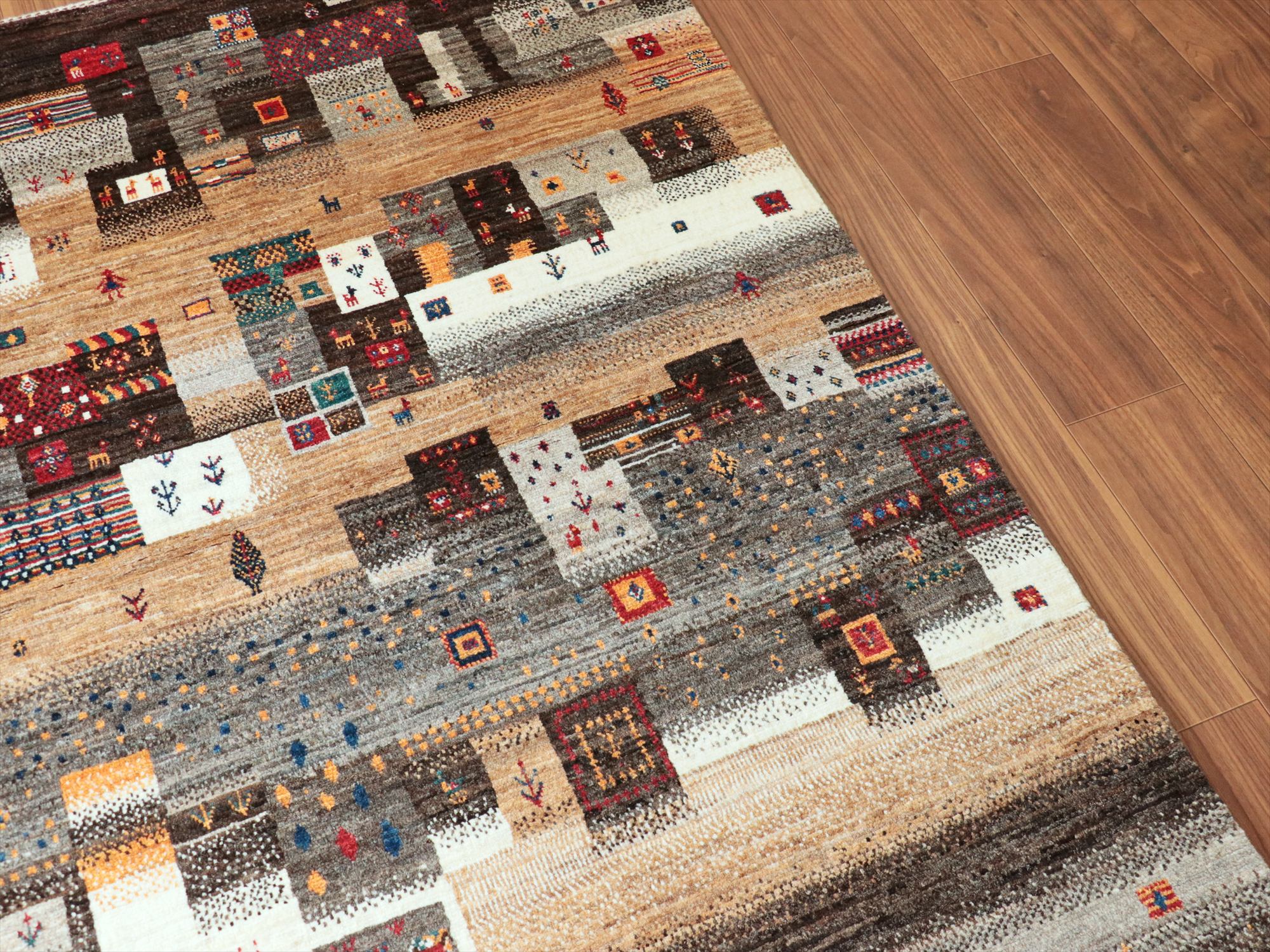 ギャッベ Nowbaft ノウバフト 手織り イラン産ラグ 171x121cm 無染色モノトーン モザイクパターン