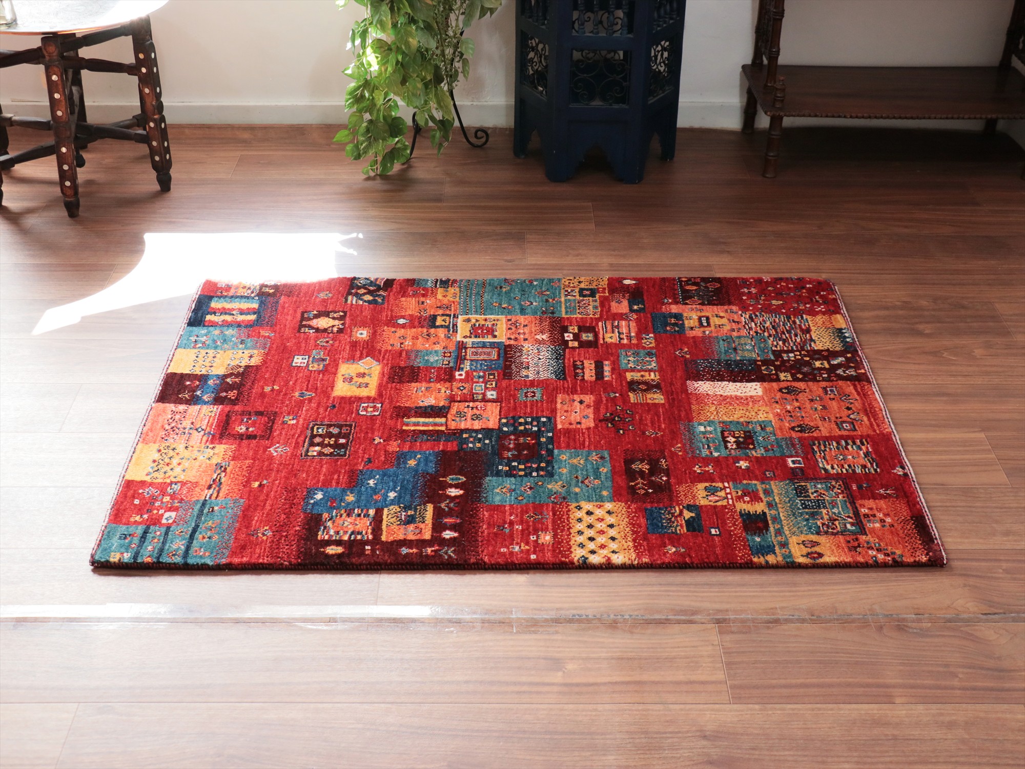 Key:Gabbeh,Nowbaft,Tribal rug, Persian carpet,Iran,Shiraz, Quashkai,Farhadian, 手織りギャッベ, 細かい, イラン直輸入, ペルシャ絨毯, 玄関マット, レッド系, 赤, カラフル, タイル柄, モザイク, 動物モチーフ, モダンデザイン, 草木染, ウール100%, ガラタバザール, 東京, 中野区