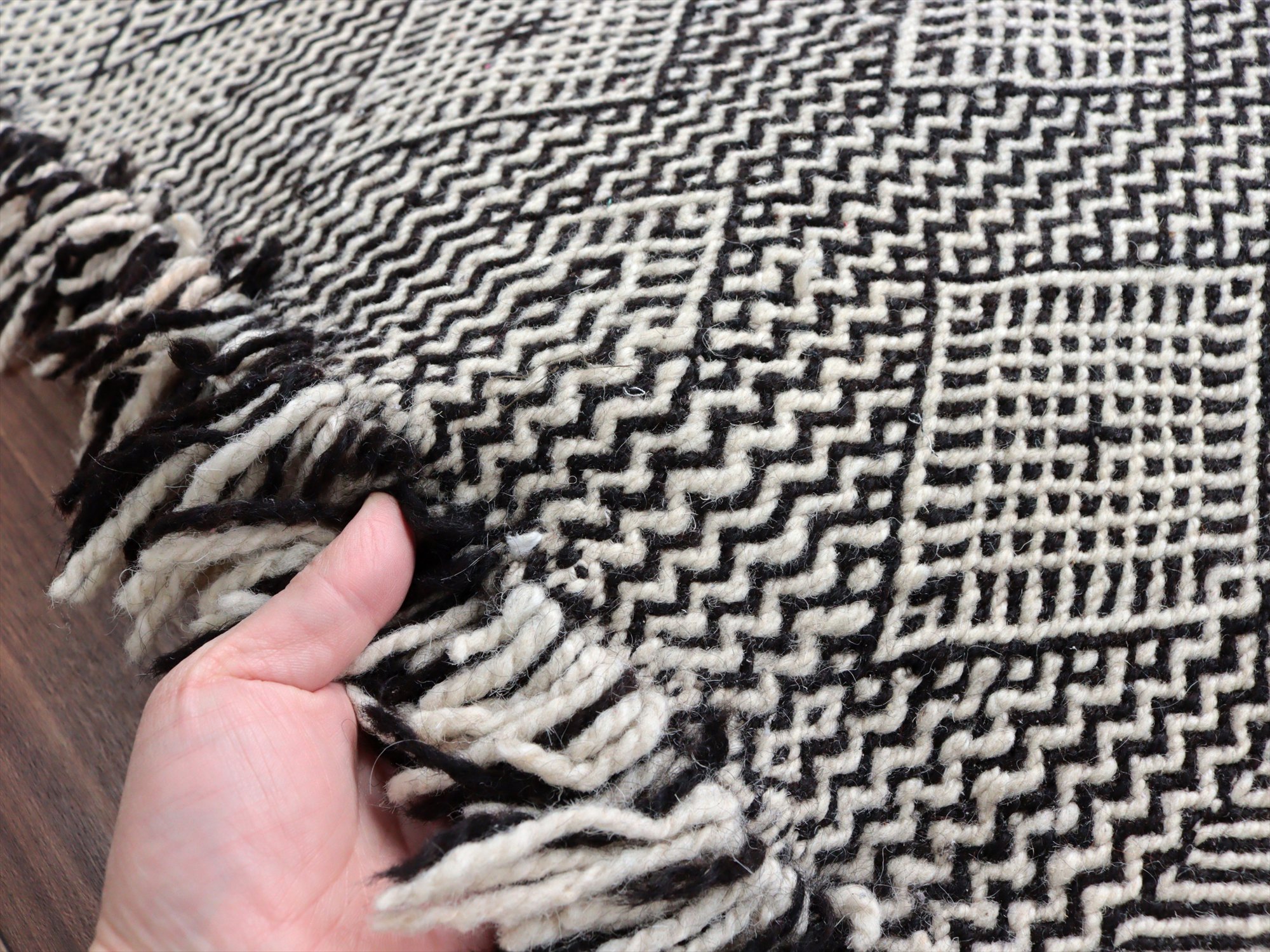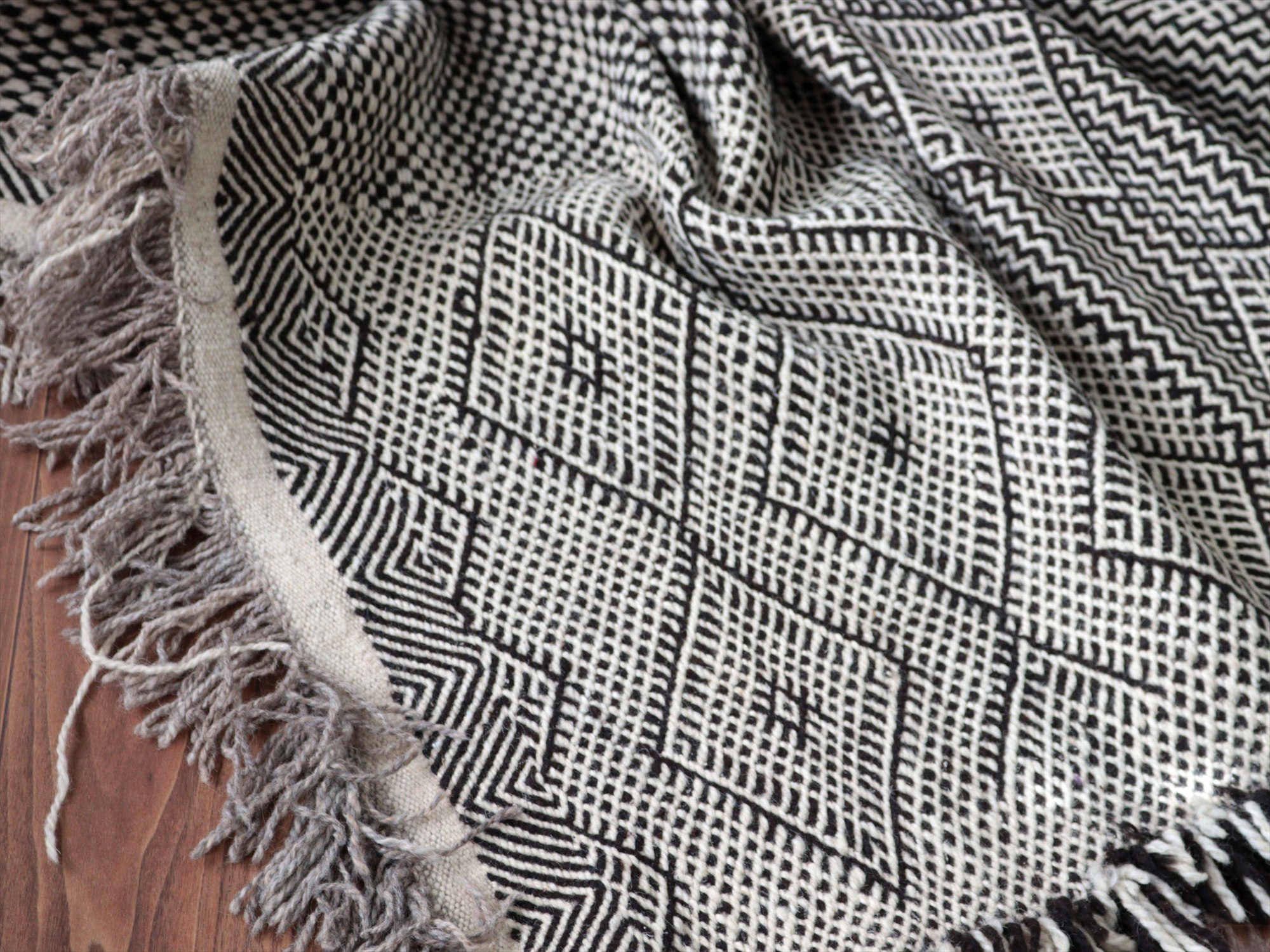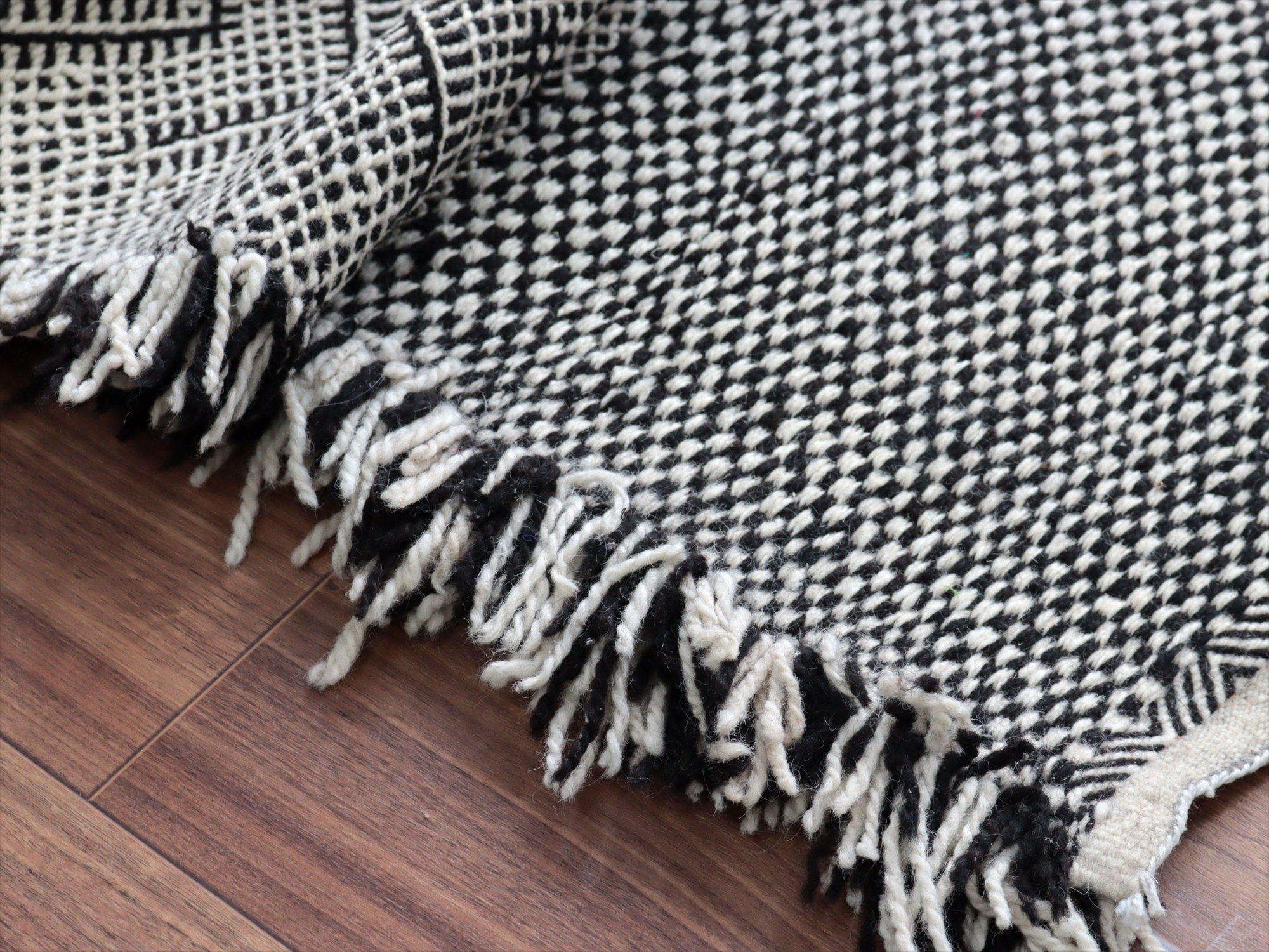 - モロッコキリム ザナフィ ZANAFI kilim205×93cm パターンの違うジジム織り モノトーン