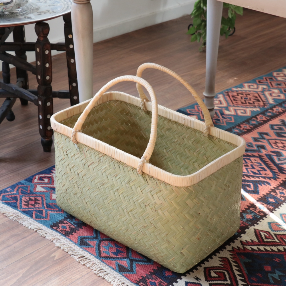 青竹市場かご 買い物かご 野菜かご 和風マルシェバスケット バンブー 民藝 古民具
