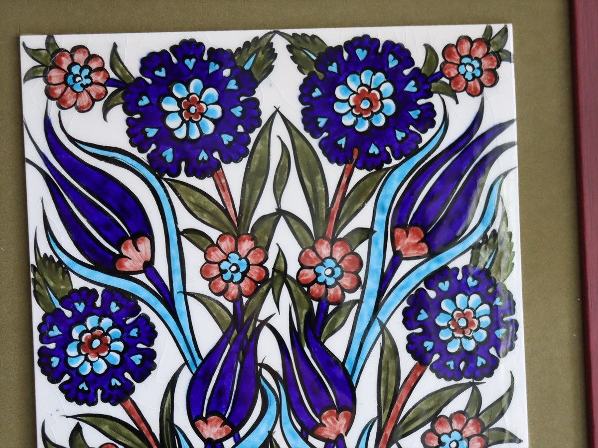 Key:タイル トルコ 陶器 イズニック キュタフヤ 手書き ハンドメイド パネル 額 インテリア 壁 ディスプレイ Iznik Tile Turkish Hand paint Handmade Ottoman Blue Mosque Kutahya