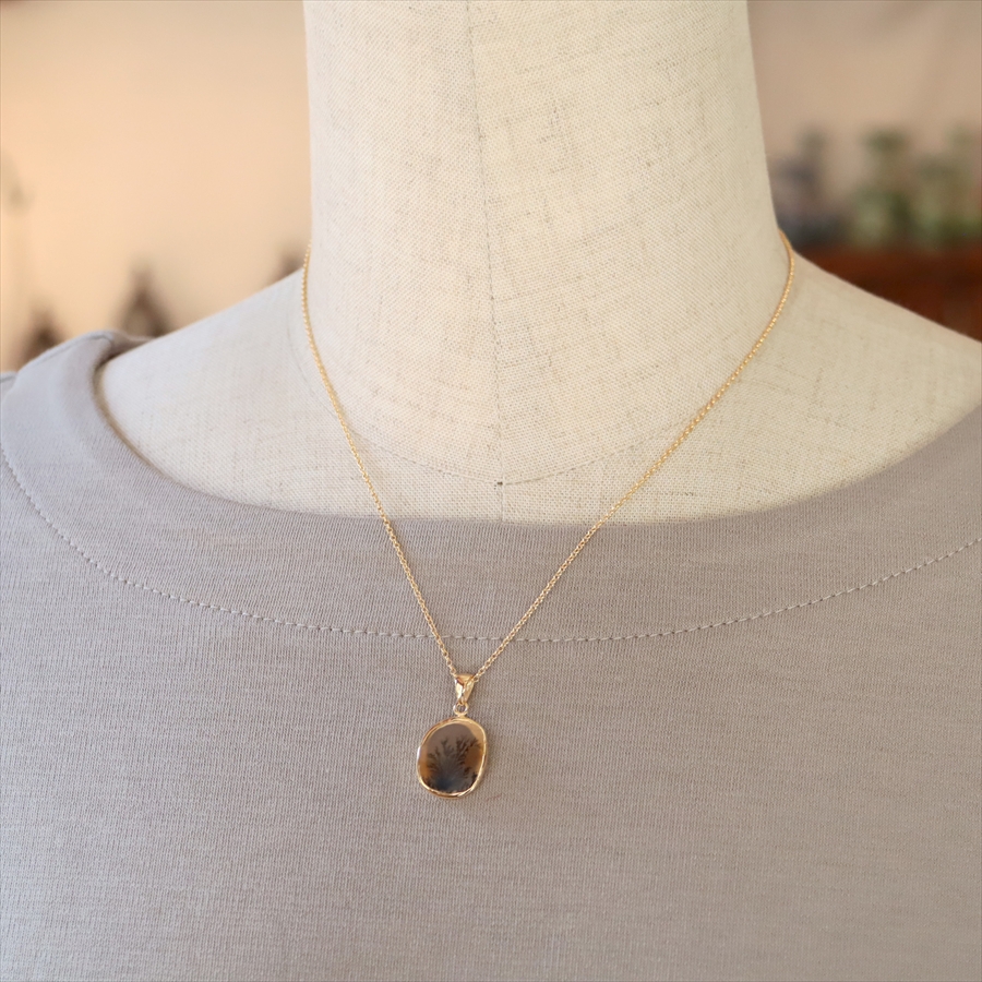 まるで樹木のシルエットのよう!でもこれは自然が創り出した鉱物の結晶が、枝のように広がったものなのだそうです。霧の中にたたずむ森や、冬枯れの枝先のようにも見えるその姿は、眺めるたびに想像をかき立てる幻想的な美しさを秘めています。同じものはふたつとない、地球からの贈り物です。自然が描いた小さな風景を、そっと身にまとってみてくださいね。