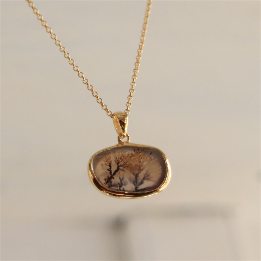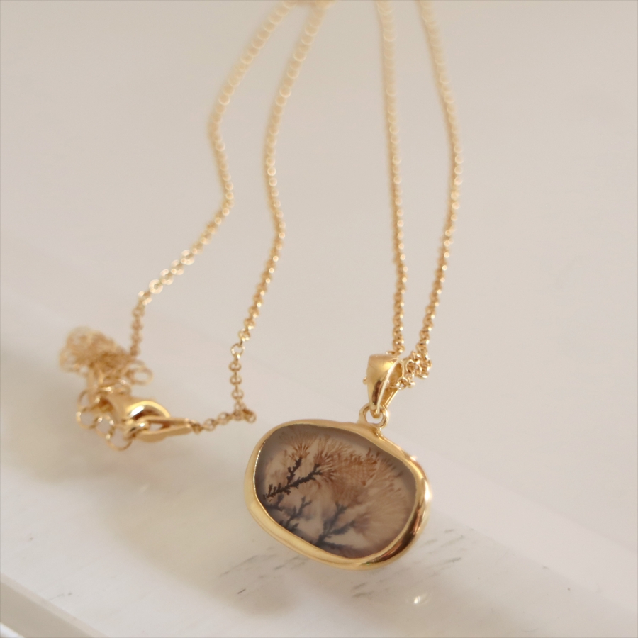 まるで樹木のシルエットのよう!でもこれは自然が創り出した鉱物の結晶が、枝のように広がったものなのだそうです。霧の中にたたずむ森や、冬枯れの枝先のようにも見えるその姿は、眺めるたびに想像をかき立てる幻想的な美しさを秘めています。同じものはふたつとない、地球からの贈り物です。自然が描いた小さな風景を、そっと身にまとってみてくださいね。