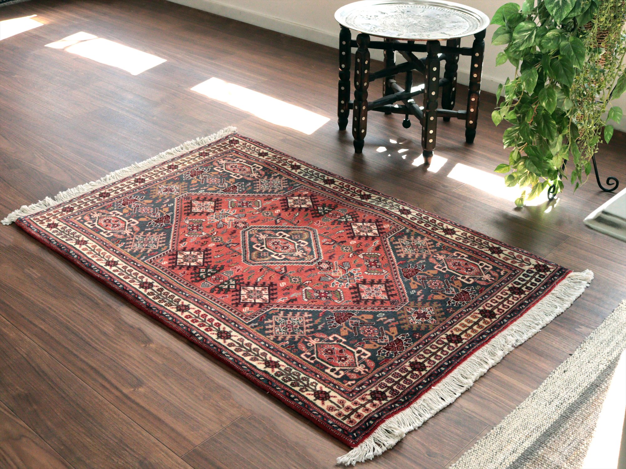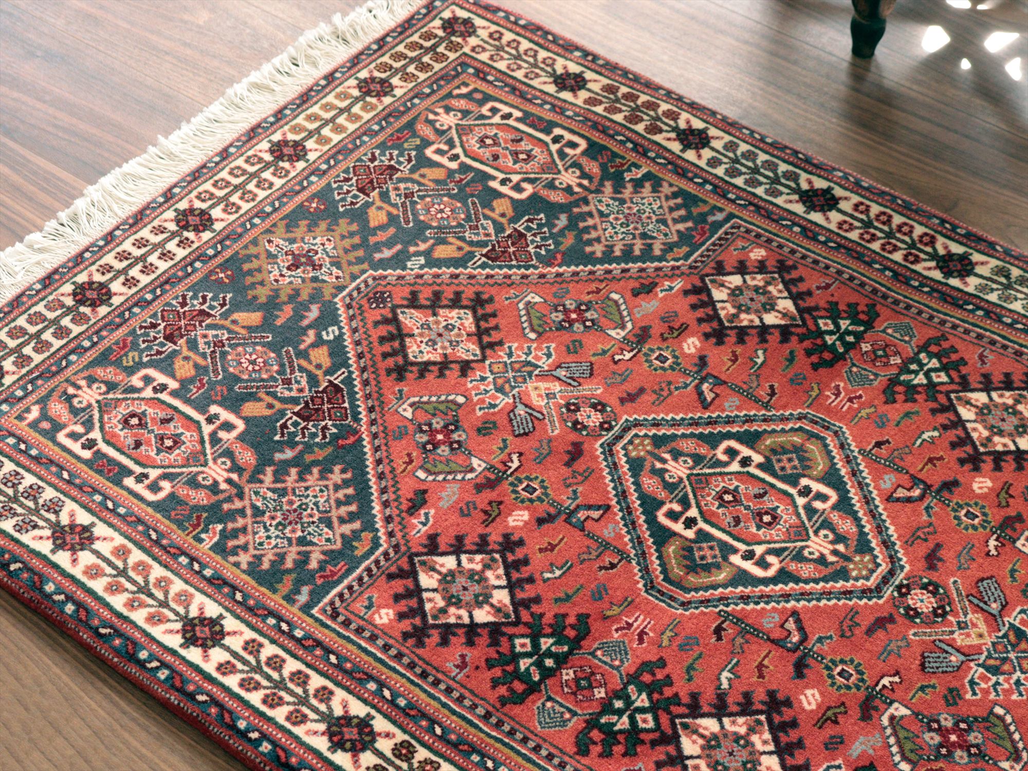 - 六角メダリオン 部族絨毯125×82cm カシュカイ族の手織りラグ カシュクーリ