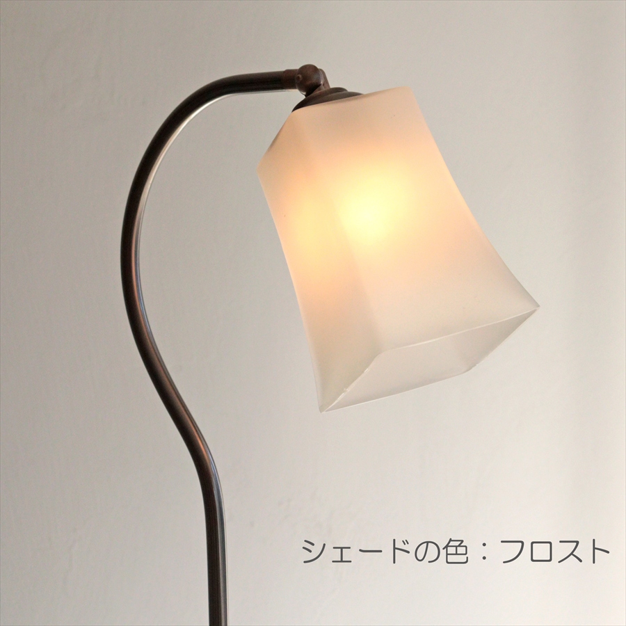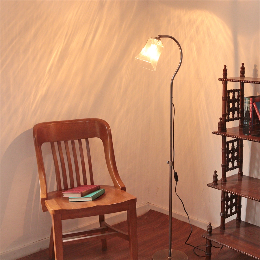 シンプルな四角いガラスシェードを使ったアンティーク風のフロアランプ。