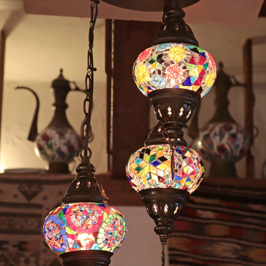 モザイクランプ トルコランプ シャンデリア 3灯 全高60cm 直径27cm カラフルミックス 【天井工事必要】