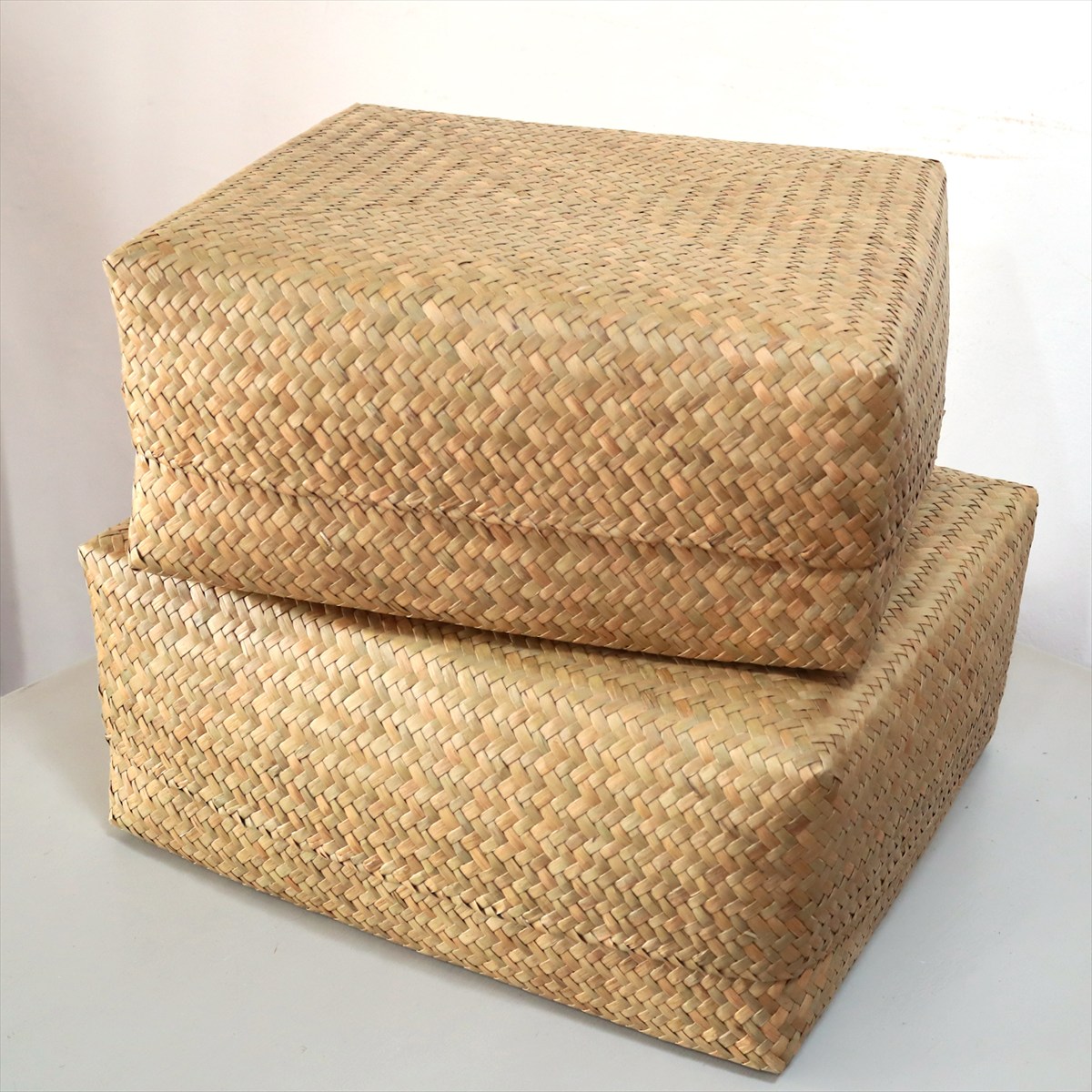 かごバスケット 2点セット M&Lサイズ 入れ子 タイ製 カチュー水草 ふた付 レクタングル 収納ボックス Basket Asian straw basket, Thailand