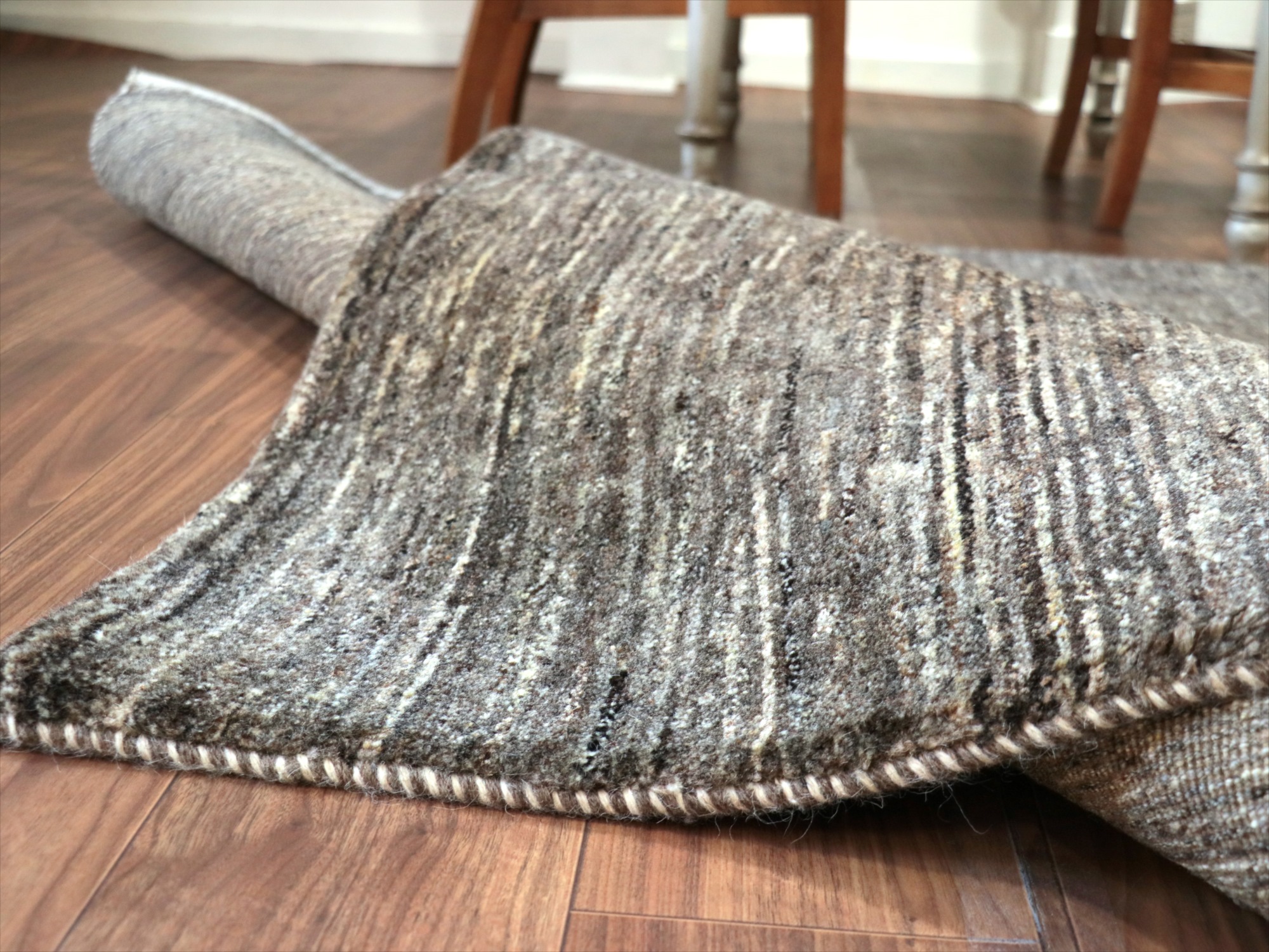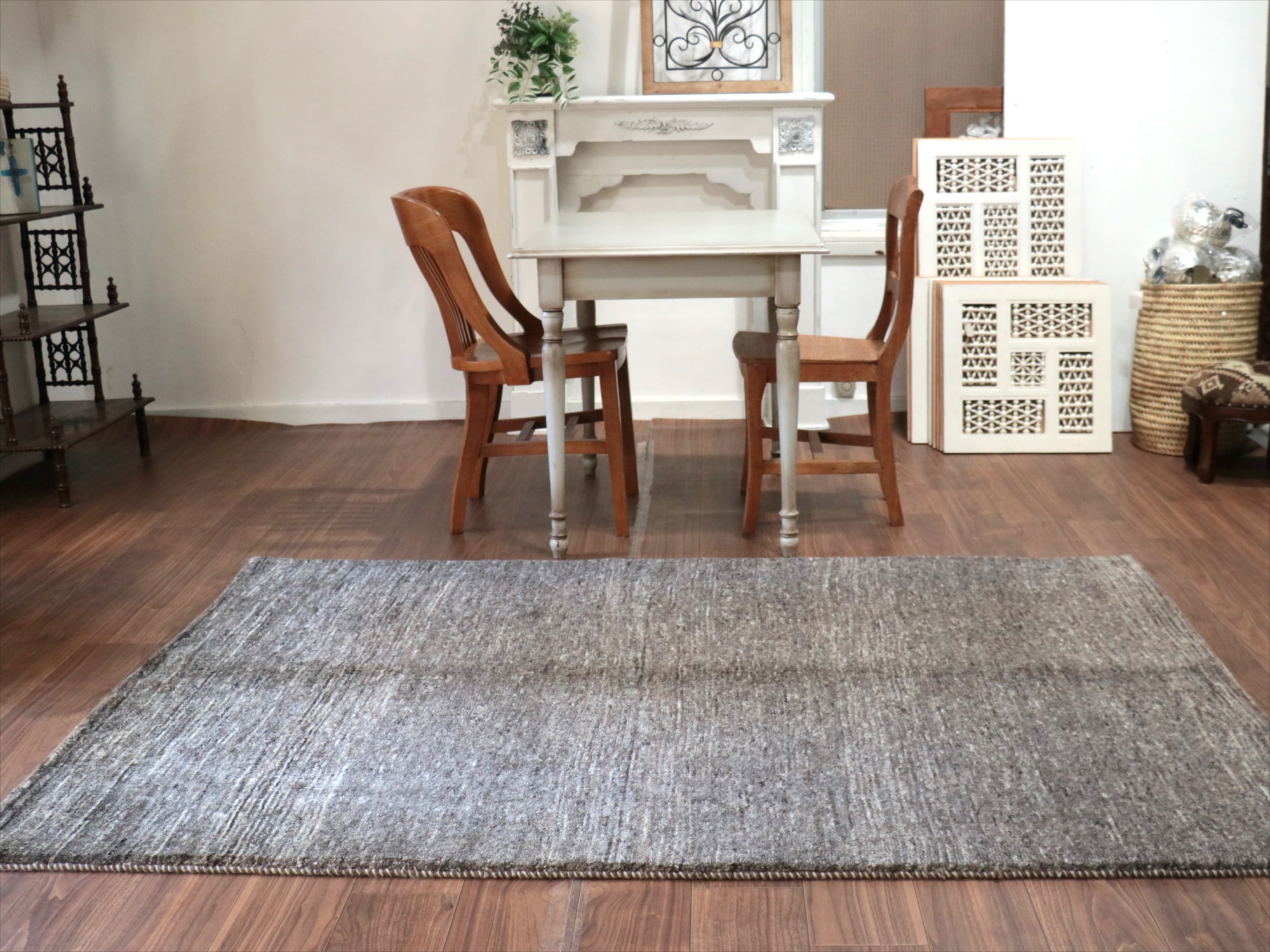 モチーフなしのギャッベをお探しの方におすすめです。モダンなカッコよさと手織りの質感が際立つ一枚です。