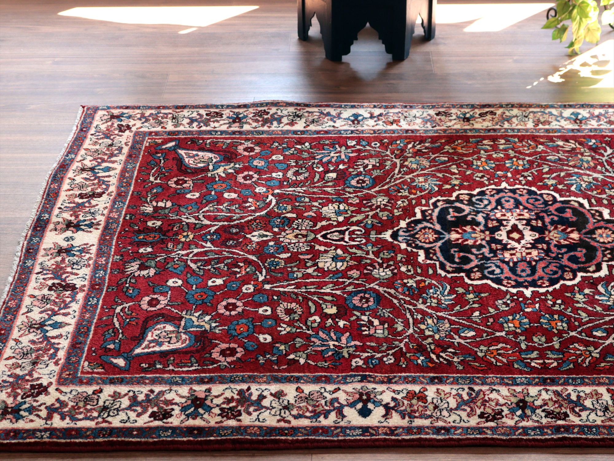 - ペルシャ絨毯 サーベ202×131cm 連なるフラワーデザイン 手織りラグ