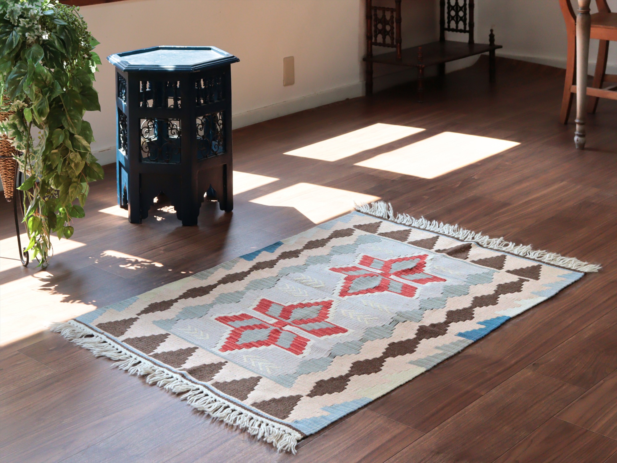 key:Turkish Rug, Turkish Carpet, Handmade, Hand knotted, wool rug, Trial rug, BOHO, BO-HO, トルコキリム, 平織り, 民藝, ハンドメイド, クラフト, 手織り, 一点もの, 現品販売, ウール, ガラタバザール