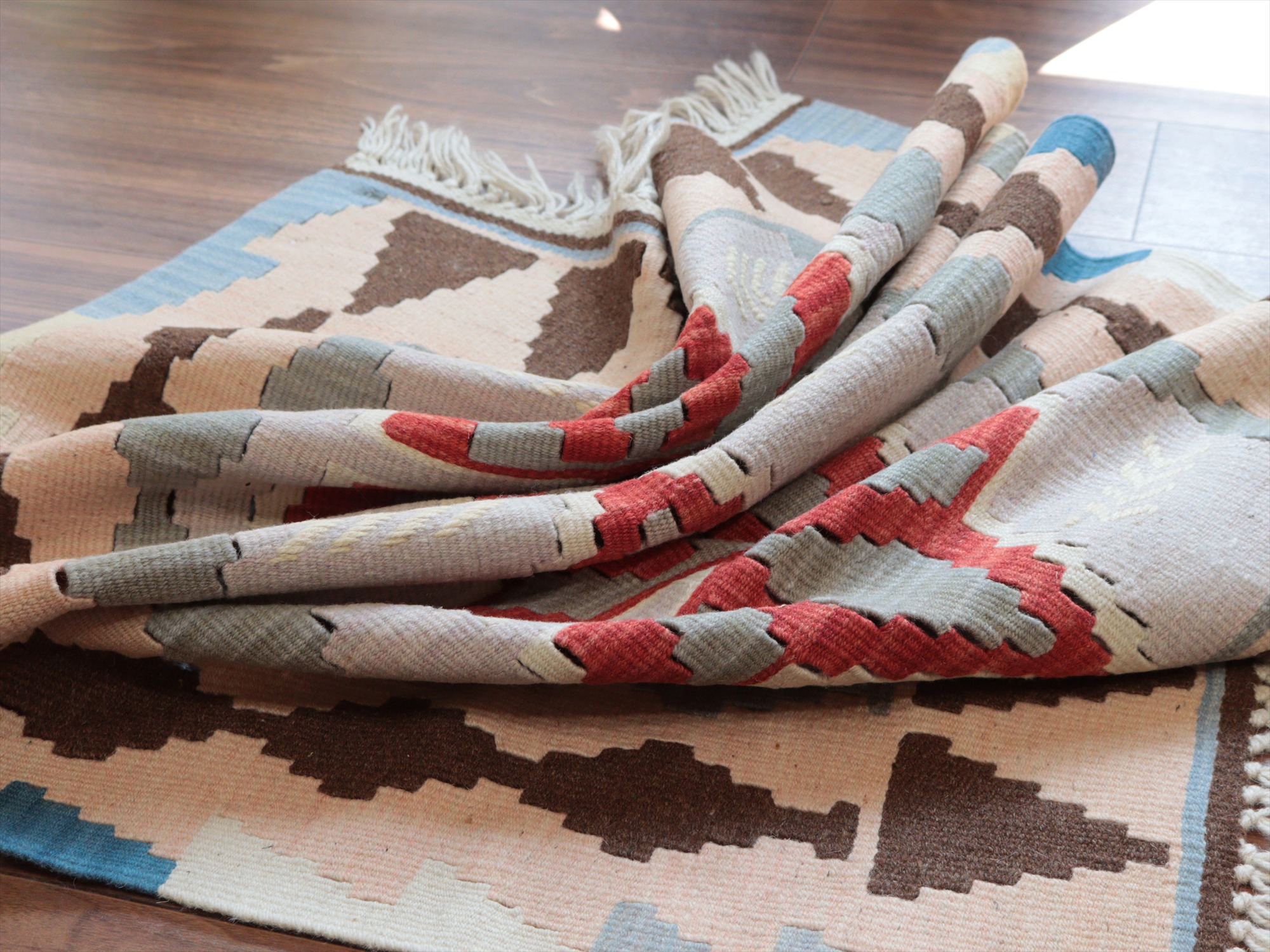 カイセリ産手織りキリム119×79cm パステルカラー トルコの手織りラグ