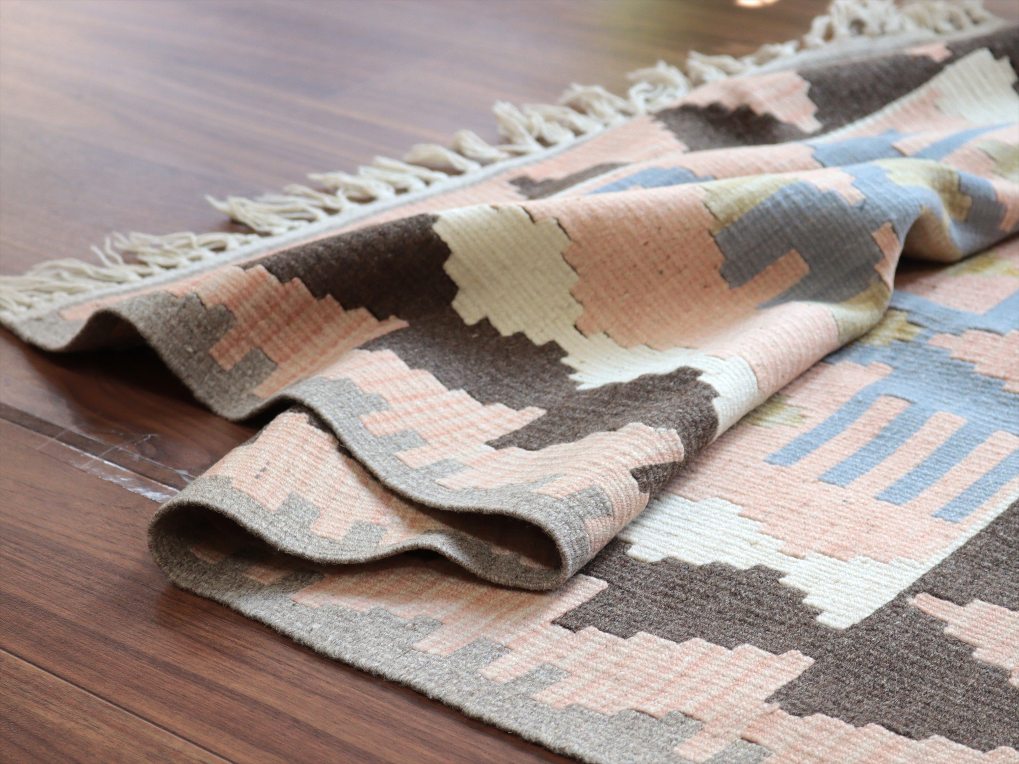 - カイセリ産手織りキリム121×82cm パステルカラー トルコの手織りラグ