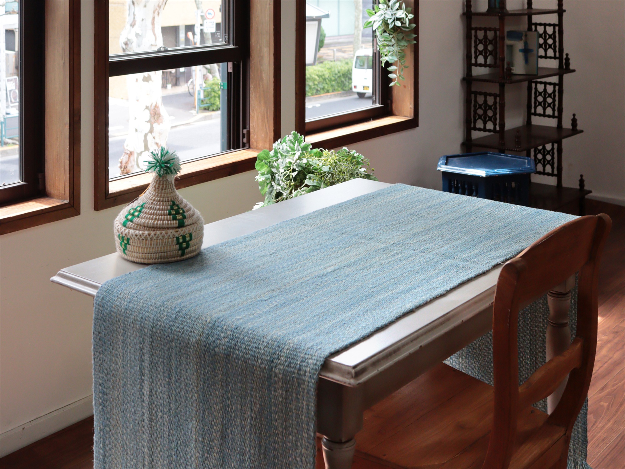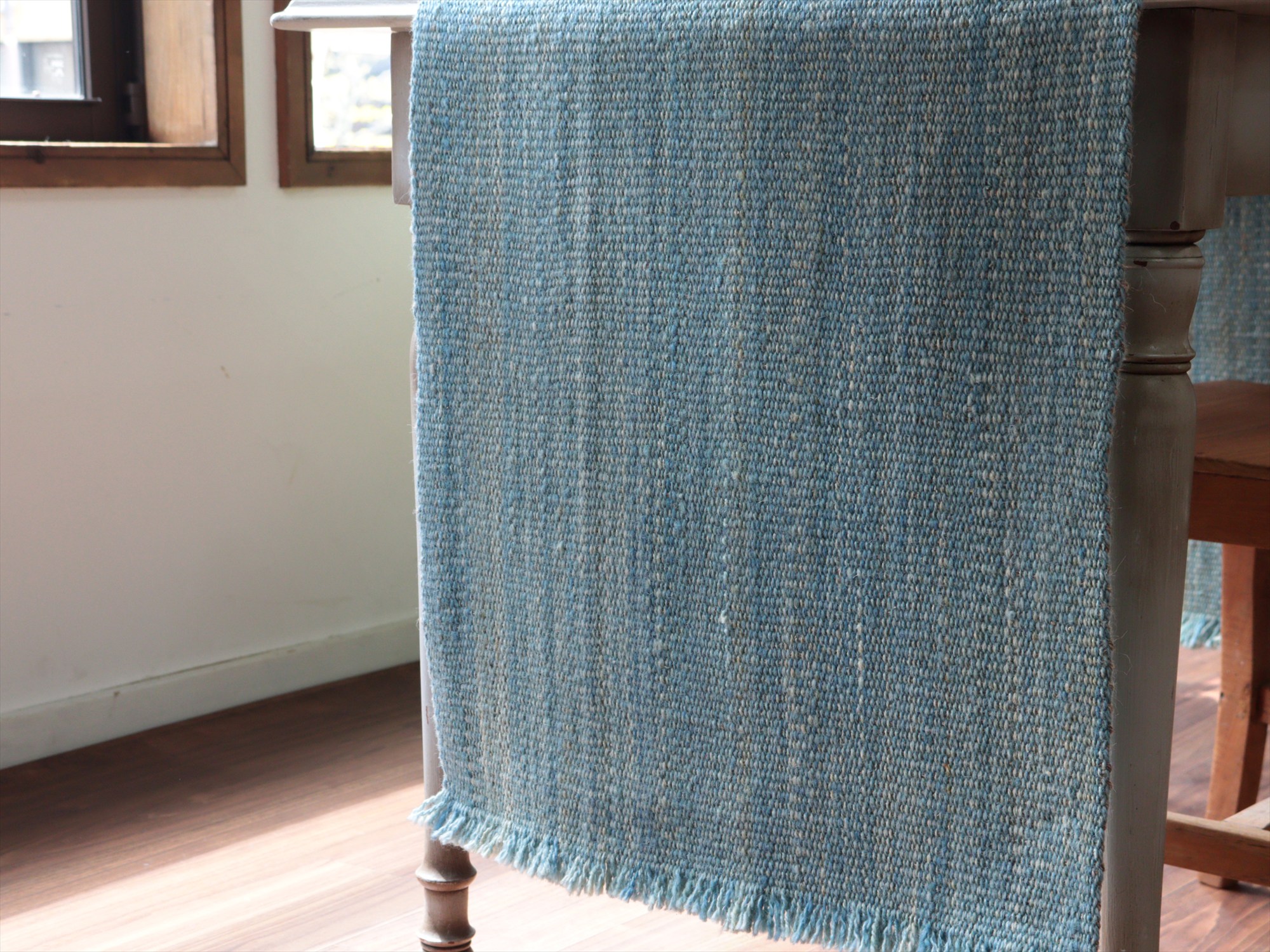 key:Turkish kilim, Natural color, monotone color, wool rug, Hand weaven, Handmade, キリム, キリムラグ, トルコキリム, 天然素材, ウール, ブルー, シンプル, mapKars, モチーフのないキリム