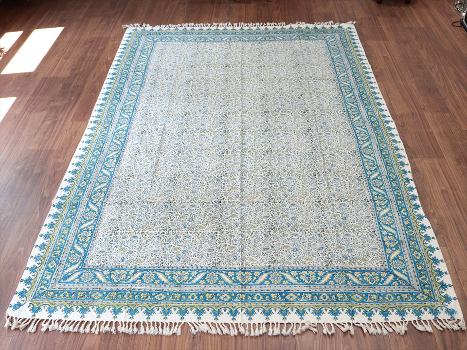 ペルシャ更紗 ガラムカール 235×155cm ブルー/グリーン フラワー柄 テーブルクロス ソファカバー