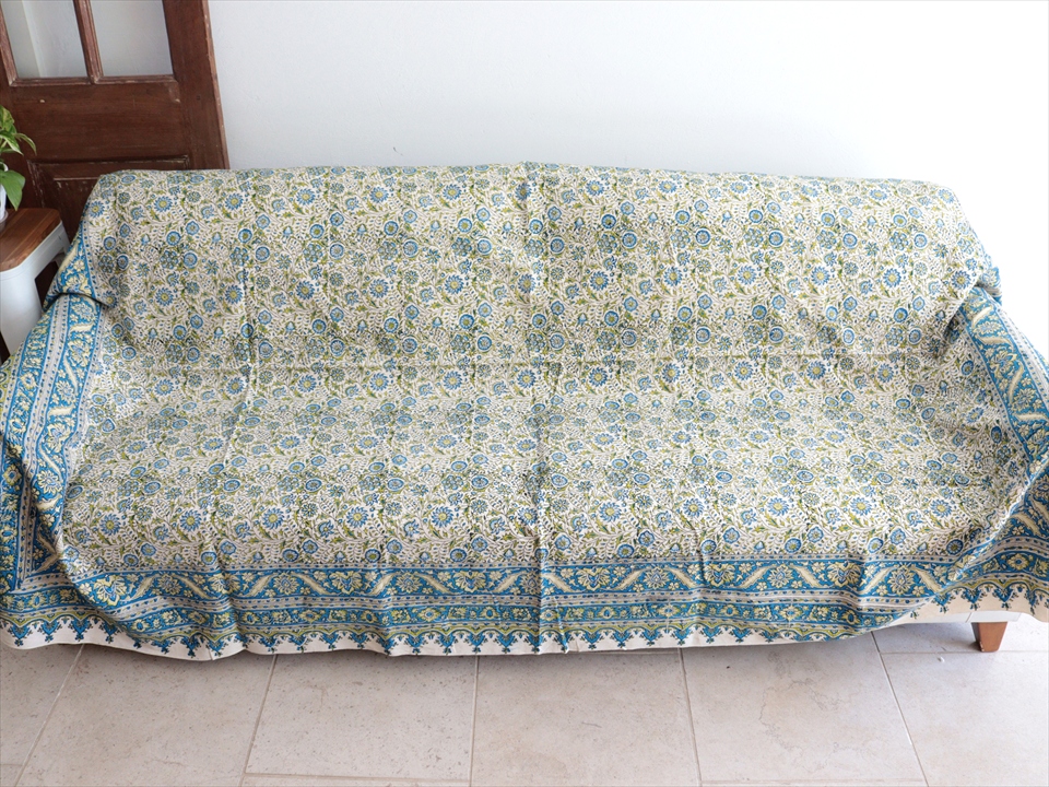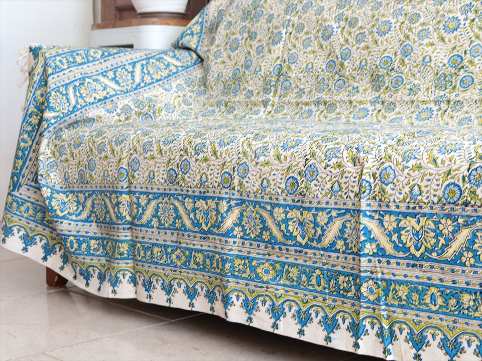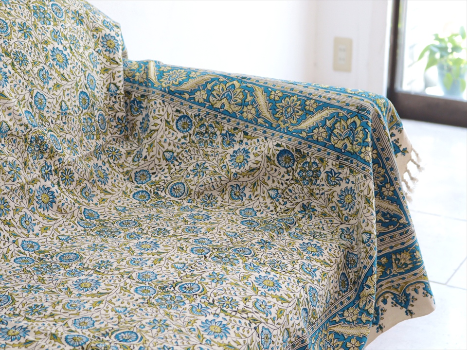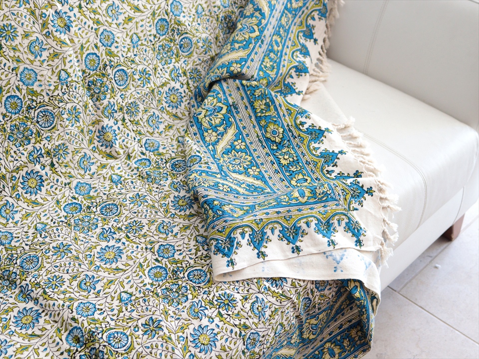 Key:コットン 染色 ブロックプリント 木版 捺染 伝統工芸 ペルシャブルー ペイズリー フリークロス マルチカバー ベッドスプレッド ベッドカバー ソファカバー カーテン タペストリー ファブリック インテリアファブリック クラフト インテリア ペルシャ ペルセポリス イラン 中東 シルクロード アジアン エスニック