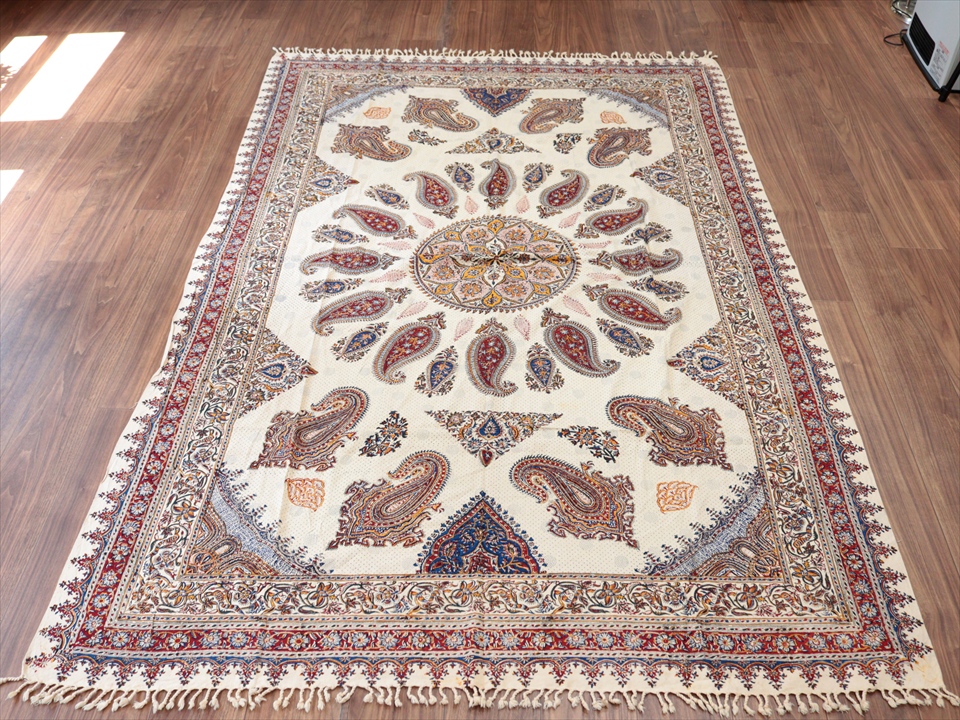 ペルシャ更紗 ガラムカール 230×151cm アンバー系 ペイズリー柄 テーブルクロス ソファカバー