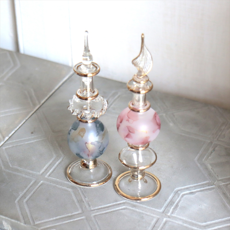 エジプト ガラス香水瓶 2本セット マーブル マットペイント Egyptian Glass Bottle